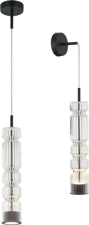 Светильник подвесной настенный эксклюзивной коллекции Up and down выполнен из металла, окрашенного в черный цвет, и стеклянного плафона линейной текстуры. Световые элементы располагаются в разных направлениях: вверх, мягко подсвечивая текстурность стекла, и вниз, создавая акцентный свет. Универсальное крепление дает возможность установки светильника как на потолок, так и на стену. Премиальное качество и неповторимый дизайн светильника идеально подойдут в классические и современные дизайнерские интерьеры.