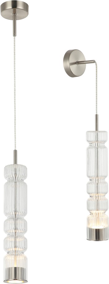 Светильник подвесной настенный эксклюзивной коллекции Up and down выполнен из металла, гальванизированного в цвет никеля, и стеклянного плафона линейной текстуры. Световые элементы располагаются в разных направлениях: вверх, мягко подсвечивая текстурность стекла, и вниз, создавая акцентный свет. Универсальное крепление дает возможность установки светильника как на потолок, так и на стену. Премиальное качество и неповторимый дизайн светильника идеально подойдут в классические и современные дизайнерские интерьеры.