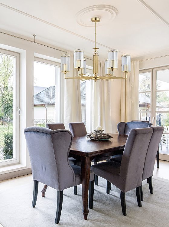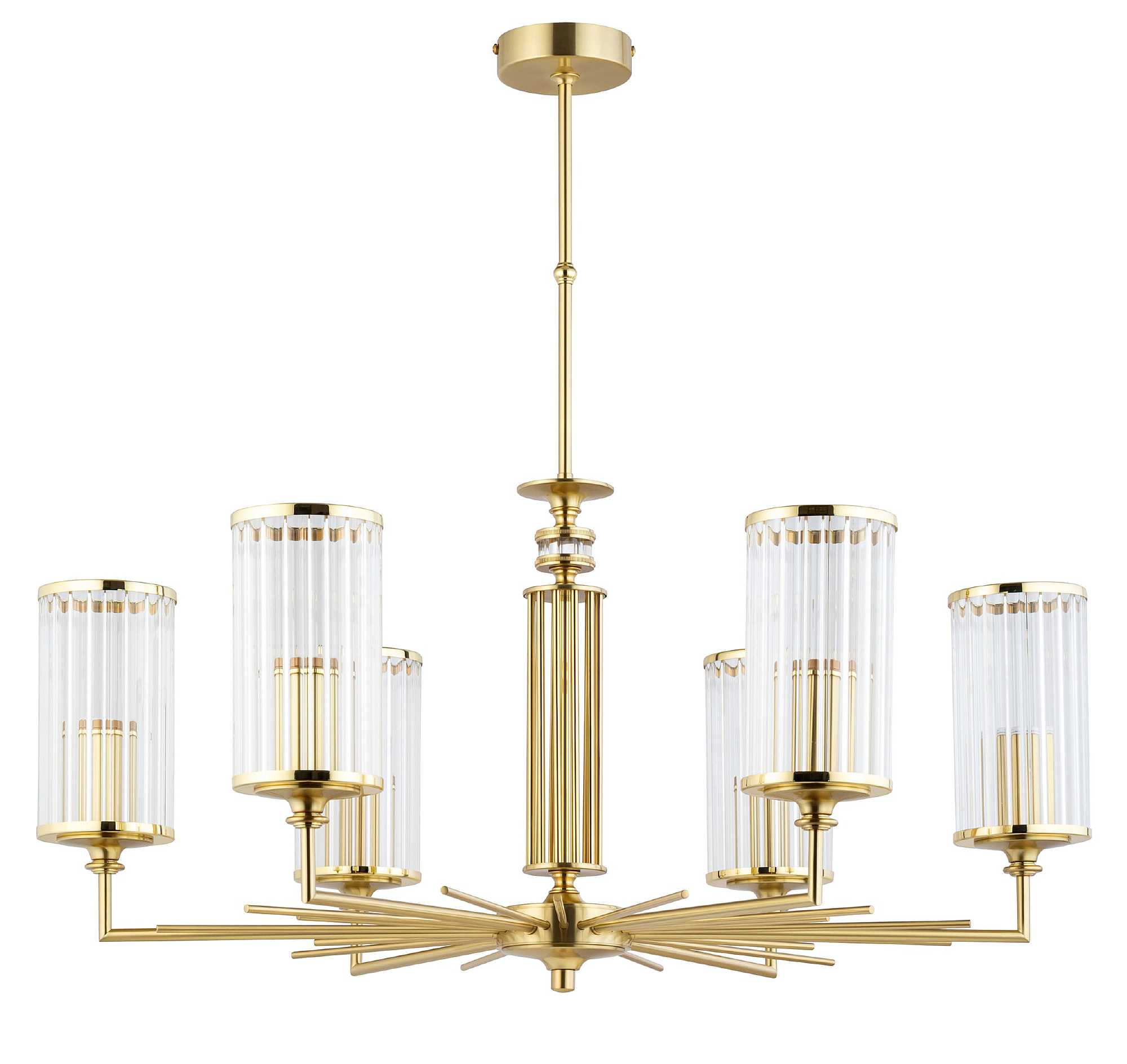 Шестирожковая люстра USI-ZW-6 (Z) с полированной латунной арматурой - эффектное и яркое освещение для обеденной зоны или гостиной. Классическая форма и блестящая отделка делают эту модель торжественным акцентом в интерьере.