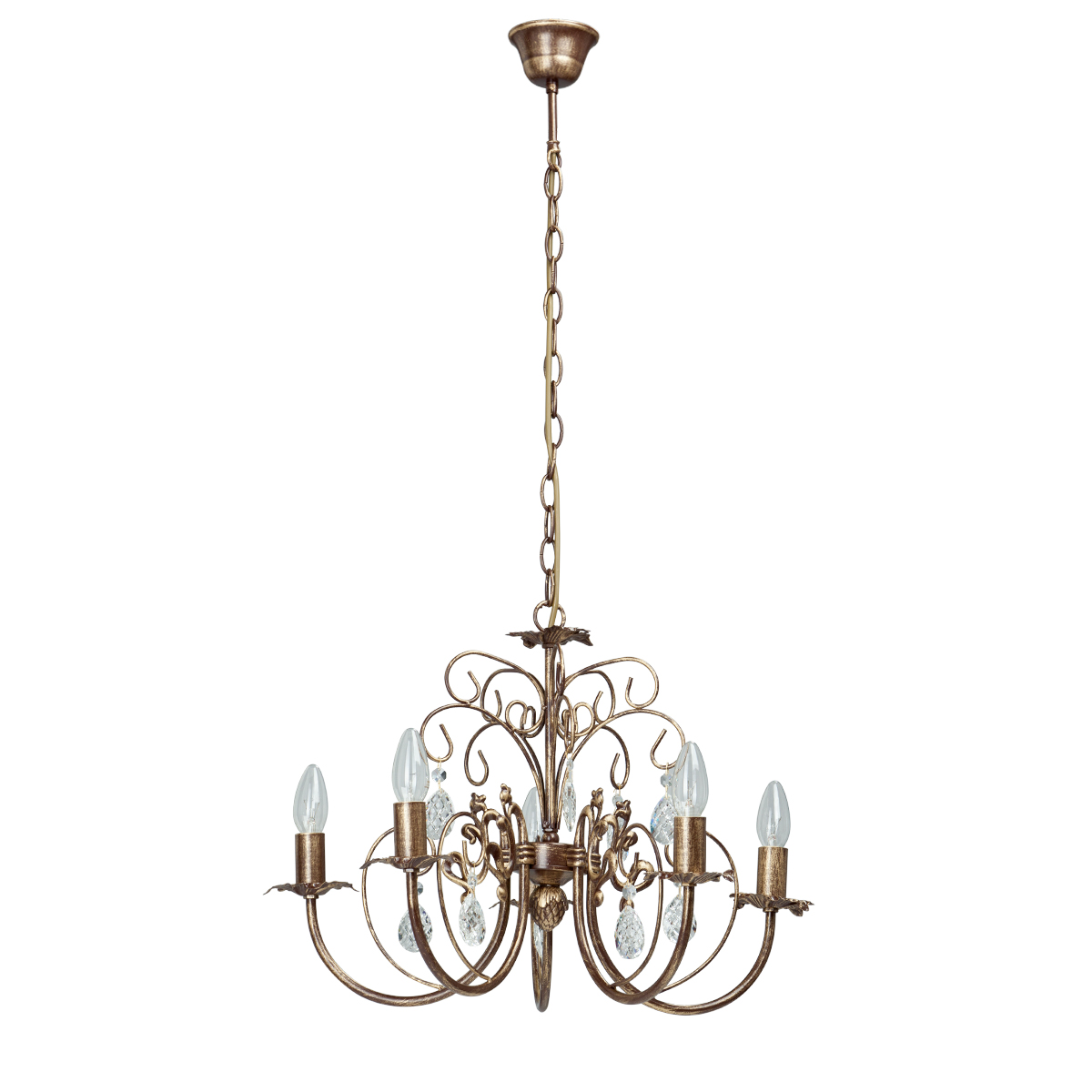 Допускается отличие страны-изготовителя, указанной в характеристиках. Линии производства могут находиться в нескольких государствах. Это не влияет на качество изготовления товара: все заводы данного бренда работают по общим стандартам, а готовые изделия проходят соответствующий контроль.Россия Коллекция V1169 ЦветЦвет арматуры Бронза Цвет Бронза Материал арматуры Металл РазмерыВысота (мм) 660 Длина (мм) 550 Ширина (мм) 550 ЭлектрикаКоличество ламп (шт) 5 Цоколь E14 Мощность лампы (Вт) 60W Напряжение (В) 220 Дополнительная информацияВес (Кг) 2,3 Тип подвеса На цепи -