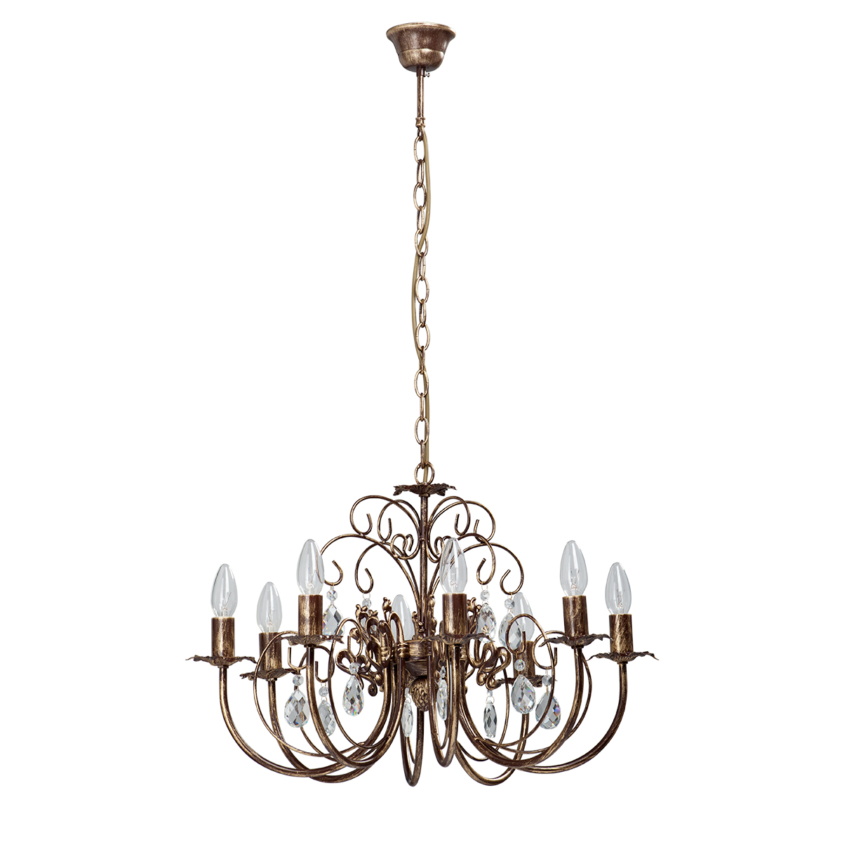 Допускается отличие страны-изготовителя, указанной в характеристиках. Линии производства могут находиться в нескольких государствах. Это не влияет на качество изготовления товара: все заводы данного бренда работают по общим стандартам, а готовые изделия проходят соответствующий контроль.Россия Коллекция V1169 ЦветЦвет арматуры Бронза Цвет Коричневый Материал арматуры Металл РазмерыВысота (мм) 730 Длина (мм) 650 Ширина (мм) 650 ЭлектрикаКоличество ламп (шт) 8 Цоколь E14 Мощность лампы (Вт) 60W Напряжение (В) 220 Дополнительная информацияВес (Кг) 3,5 Тип подвеса На цепи -