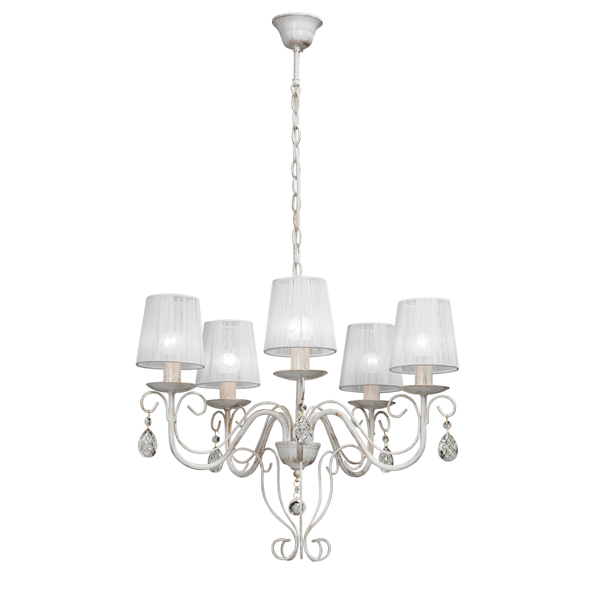 Допускается отличие страны-изготовителя, указанной в характеристиках. Линии производства могут находиться в нескольких государствах. Это не влияет на качество изготовления товара: все заводы данного бренда работают по общим стандартам, а готовые изделия проходят соответствующий контроль.Россия Коллекция V1264 ЦветЦвет арматуры Белый Цвет Белый Материал арматуры Металл Материал плафона Ткань РазмерыВысота (мм) 550 Длина (мм) 570 Ширина (мм) 570 ЭлектрикаКоличество ламп (шт) 5 Цоколь E14 Мощность лампы (Вт) 60W Напряжение (В) 220 Дополнительная информацияВес (Кг) 1,9 Тип подвеса На цепи -