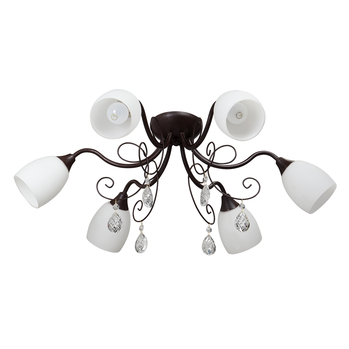 Допускается отличие страны-изготовителя, указанной в характеристиках. Линии производства могут находиться в нескольких государствах. Это не влияет на качество изготовления товара: все заводы данного бренда работают по общим стандартам, а готовые изделия проходят соответствующий контроль.Россия Коллекция V1472 ЦветЦвет арматуры Коричневый Цвет Коричневый Материал арматуры Металл Материал плафона Стекло РазмерыВысота (мм) 220 Диаметр (мм) 700 Ширина (мм) 700 ЭлектрикаКоличество ламп (шт) 6 Цоколь E14 Мощность лампы (Вт) 60W Напряжение (В) 220 Дополнительная информацияВес (Кг) 2,7 -