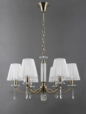 Допускается отличие страны-изготовителя, указанной в характеристиках. Линии производства могут находиться в нескольких государствах. Это не влияет на качество изготовления товара: все заводы данного бренда работают по общим стандартам, а готовые изделия проходят соответствующий контроль.Россия Коллекция V1840 ЦветЦвет арматуры Бронза Цвет Бронза Материал арматуры Металл Материал декора Стекло Материал плафона Ткань РазмерыВысота (мм) 430 Диаметр (мм) 640 Ширина (мм) 640 ЭлектрикаКоличество ламп (шт) 6 Цоколь E14 Тип лампы Накаливания Лампочки в комплекте Нет в комплекте Мощность лампы (Вт) 40 Общая мощность (Вт) 240 Площадь освещения 12 Дополнительная информацияСпособ крепления Крюк Вес (Кг) 3,25 Тип подвеса На цепи -