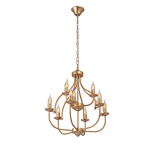 Допускается отличие страны-изготовителя, указанной в характеристиках. Линии производства могут находиться в нескольких государствах. Это не влияет на качество изготовления товара: все заводы данного бренда работают по общим стандартам, а готовые изделия проходят соответствующий контроль.Россия Коллекция V1863 ЦветЦвет арматуры Золото Цвет Золото Материал арматуры Металл РазмерыВысота (мм) 1230 Длина (мм) 555 Ширина (мм) 555 ЭлектрикаКоличество ламп (шт) 9 Цоколь E14 Тип лампы Накаливания Лампочки в комплекте Нет в комплекте Мощность лампы (Вт) 40 Общая мощность (Вт) 360 Площадь освещения 27 Дополнительная информацияСпособ крепления Крюк Вес (Кг) 2,8 Тип подвеса На цепи -