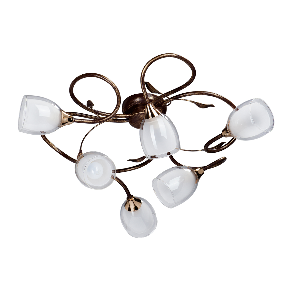 Допускается отличие страны-изготовителя, указанной в характеристиках. Линии производства могут находиться в нескольких государствах. Это не влияет на качество изготовления товара: все заводы данного бренда работают по общим стандартам, а готовые изделия проходят соответствующий контроль.Россия Коллекция V3262 ЦветЦвет арматуры Золото, Коричневый Цвет Коричневый Материал арматуры Металл Цвет плафона прозрачный Материал плафона Стекло РазмерыВысота (мм) 270 Длина (мм) 650 Ширина (мм) 650 ЭлектрикаКоличество ламп (шт) 6 Цоколь E14 Мощность лампы (Вт) 60W Напряжение (В) 220 Дополнительная информацияВес (Кг) 2,4 -