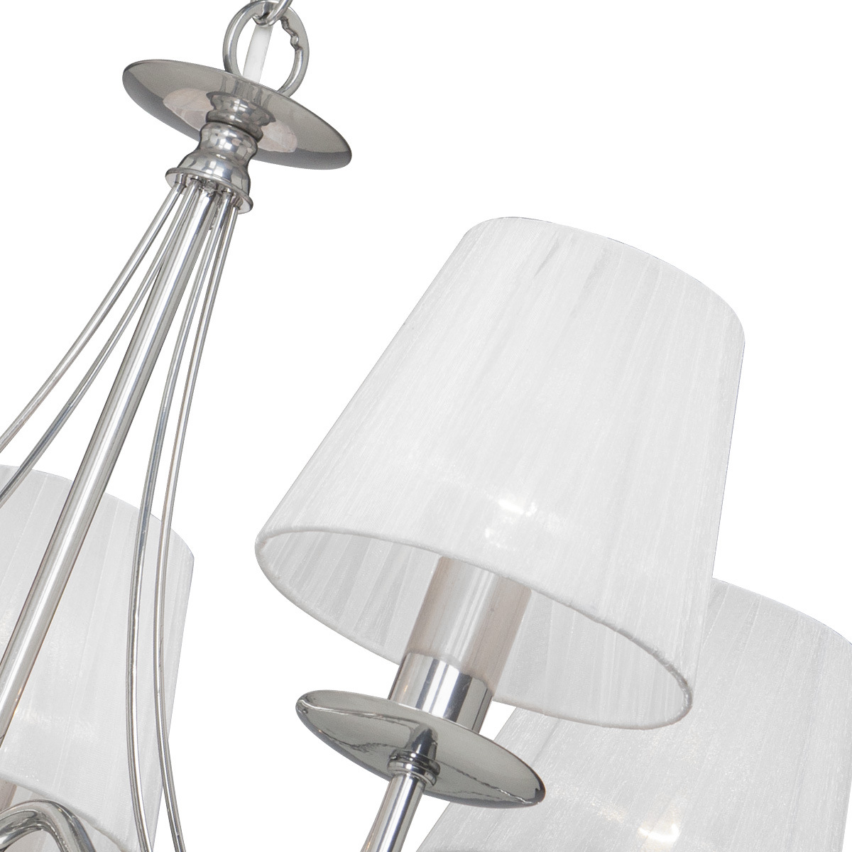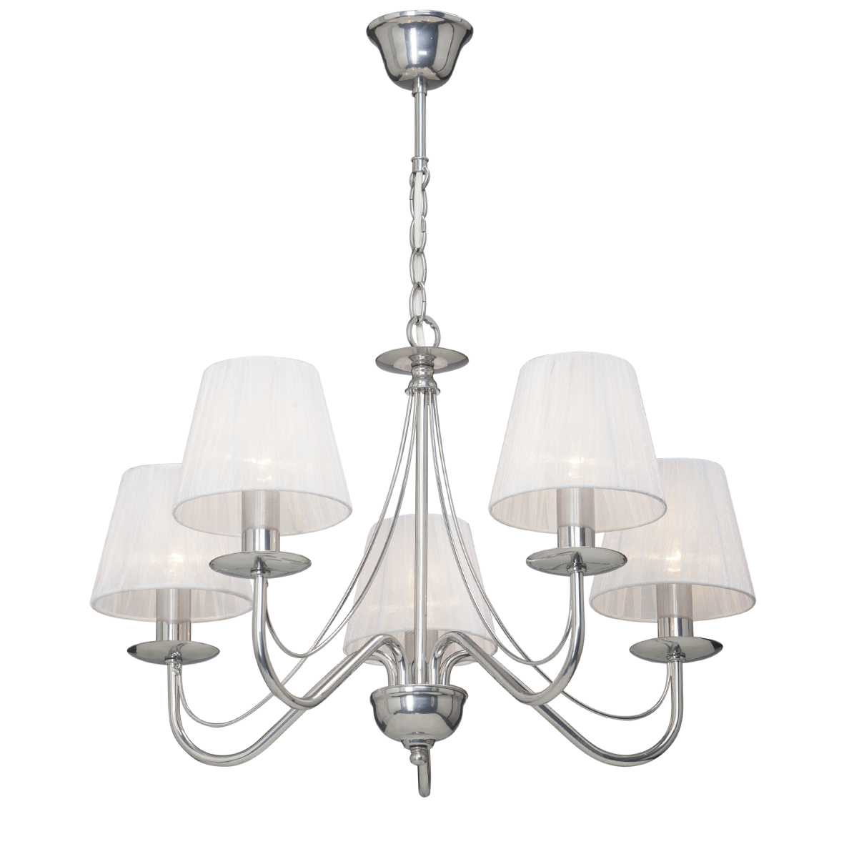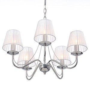 Допускается отличие страны-изготовителя, указанной в характеристиках. Линии производства могут находиться в нескольких государствах. Это не влияет на качество изготовления товара: все заводы данного бренда работают по общим стандартам, а готовые изделия проходят соответствующий контроль.Россия Коллекция V3568 ЦветЦвет арматуры Хром Цвет Хром Материал арматуры Металл Материал плафона Ткань РазмерыВысота (мм) 650 Диаметр (мм) 530 Ширина (мм) 530 ЭлектрикаКоличество ламп (шт) 5 Цоколь E14 Мощность лампы (Вт) 60W Напряжение (В) 220 Площадь освещения 15 Дополнительная информацияСпособ крепления Крюк Вес (Кг) 2 -