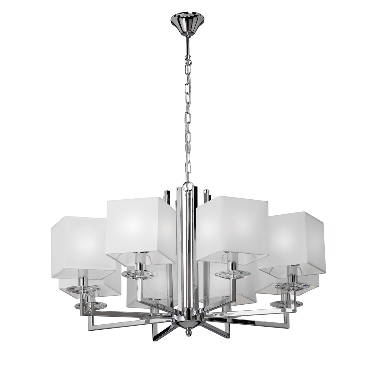 Допускается отличие страны-изготовителя, указанной в характеристиках. Линии производства могут находиться в нескольких государствах. Это не влияет на качество изготовления товара: все заводы данного бренда работают по общим стандартам, а готовые изделия проходят соответствующий контроль.Россия Коллекция V3917 ЦветЦвет арматуры Хром Цвет Хром Материал арматуры Металл Материал плафона Ткань РазмерыВысота (мм) 990 Длина (мм) 810 Ширина (мм) 810 ЭлектрикаКоличество ламп (шт) 8 Цоколь E14 Тип лампы Накаливания Лампочки в комплекте Нет в комплекте Мощность лампы (Вт) 40 Общая мощность (Вт) 320 Площадь освещения 16 Дополнительная информацияСпособ крепления Крюк Вес (Кг) 6 Тип подвеса На цепи -
