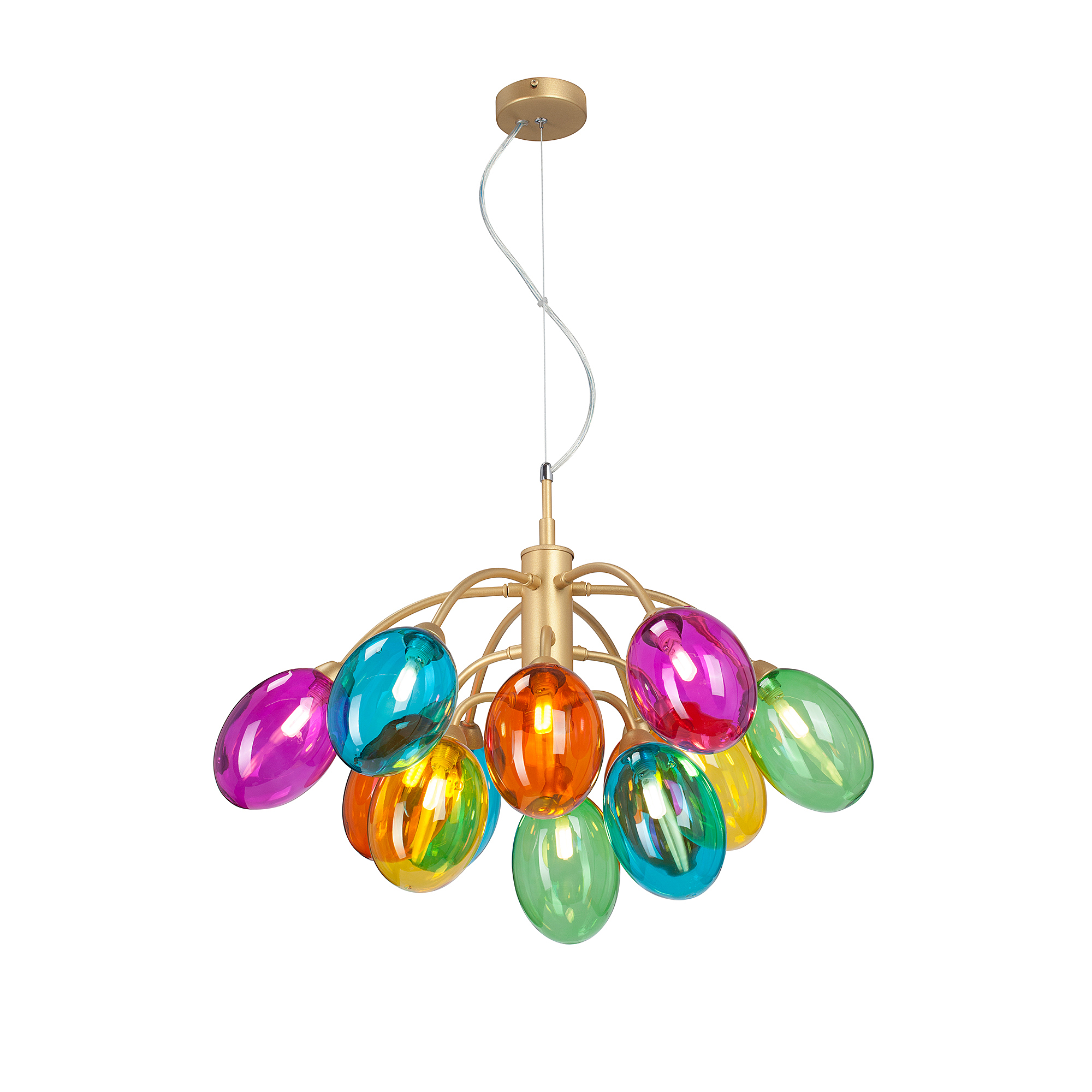 Допускается отличие страны-изготовителя, указанной в характеристиках. Линии производства могут находиться в нескольких государствах. Это не влияет на качество изготовления товара: все заводы данного бренда работают по общим стандартам, а готовые изделия проходят соответствующий контроль.Россия Коллекция V4288 ЦветЦвет арматуры Золото Цвет Разноцветные Материал арматуры Металл Цвет плафона разноцветный Материал плафона Стекло РазмерыВысота (мм) 1360 Диаметр (мм) 670 Ширина (мм) 670 ЭлектрикаКоличество ламп (шт) 12 Цоколь G9 Мощность лампы (Вт) 28 Общая мощность (Вт) 336 Площадь освещения 36 Дополнительная информацияСпособ крепления Планка Вес (Кг) 3.15 Тип подвеса На тросах -