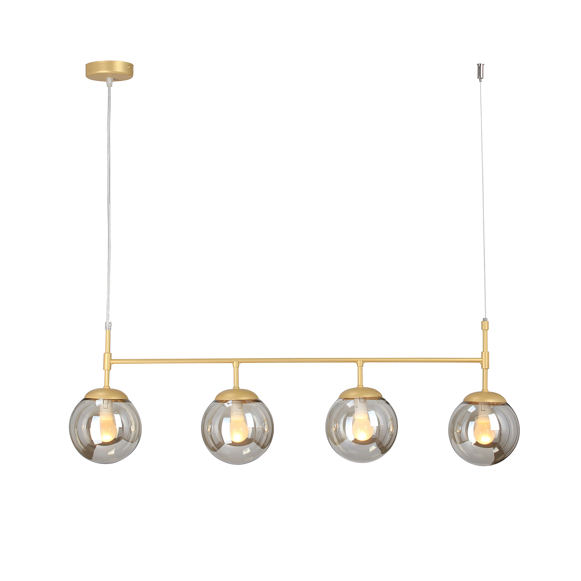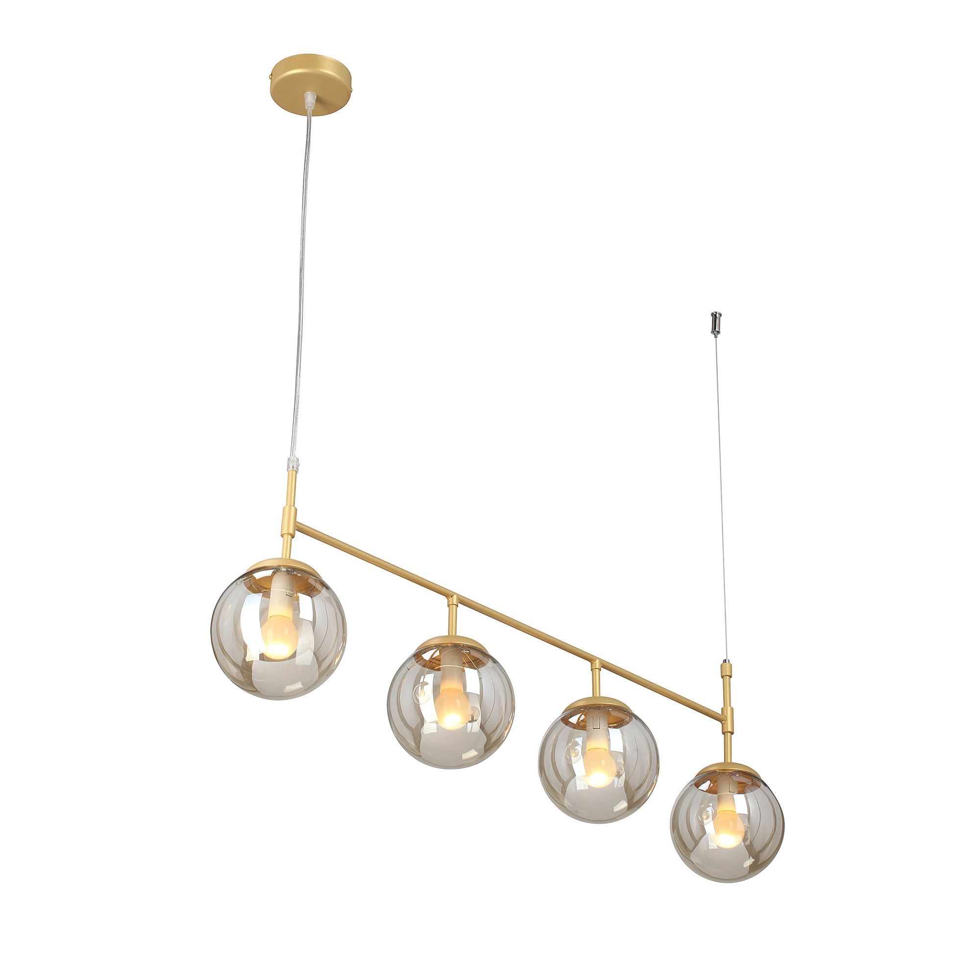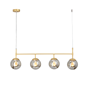Допускается отличие страны-изготовителя, указанной в характеристиках. Линии производства могут находиться в нескольких государствах. Это не влияет на качество изготовления товара: все заводы данного бренда работают по общим стандартам, а готовые изделия проходят соответствующий контроль.Россия Коллекция V4692 ЦветЦвет арматуры Золото Цвет Золото Материал арматуры Металл Цвет плафона светло-коньячный Материал плафона Стекло РазмерыВысота (мм) 1210 Длина (мм) 925 Ширина (мм) 150 ЭлектрикаКоличество ламп (шт) 4 Цоколь E27 Тип лампы Накаливания Лампочки в комплекте Нет в комплекте Мощность лампы (Вт) 40 Общая мощность (Вт) 160 Площадь освещения 12 Дополнительная информацияСпособ крепления Планка Вес (Кг) 1.7 Тип подвеса На тросах Количество подвесов Одиночный подвес -