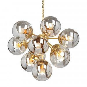 Допускается отличие страны-изготовителя, указанной в характеристиках. Линии производства могут находиться в нескольких государствах. Это не влияет на качество изготовления товара: все заводы данного бренда работают по общим стандартам, а готовые изделия проходят соответствующий контроль.Россия Коллекция V4963 ЦветЦвет арматуры Золото Цвет Золото Материал арматуры Металл Цвет плафона светло-коньячный Материал плафона Стекло РазмерыВысота (мм) 1080 Диаметр (мм) 550 Ширина (мм) 550 ЭлектрикаКоличество ламп (шт) 10 Цоколь E14 Тип лампы Накаливания Лампочки в комплекте Нет в комплекте Мощность лампы (Вт) 40 Общая мощность (Вт) 400 Площадь освещения 20 Дополнительная информацияСпособ крепления Крюк Вес (Кг) 3,6 Тип подвеса На цепи -