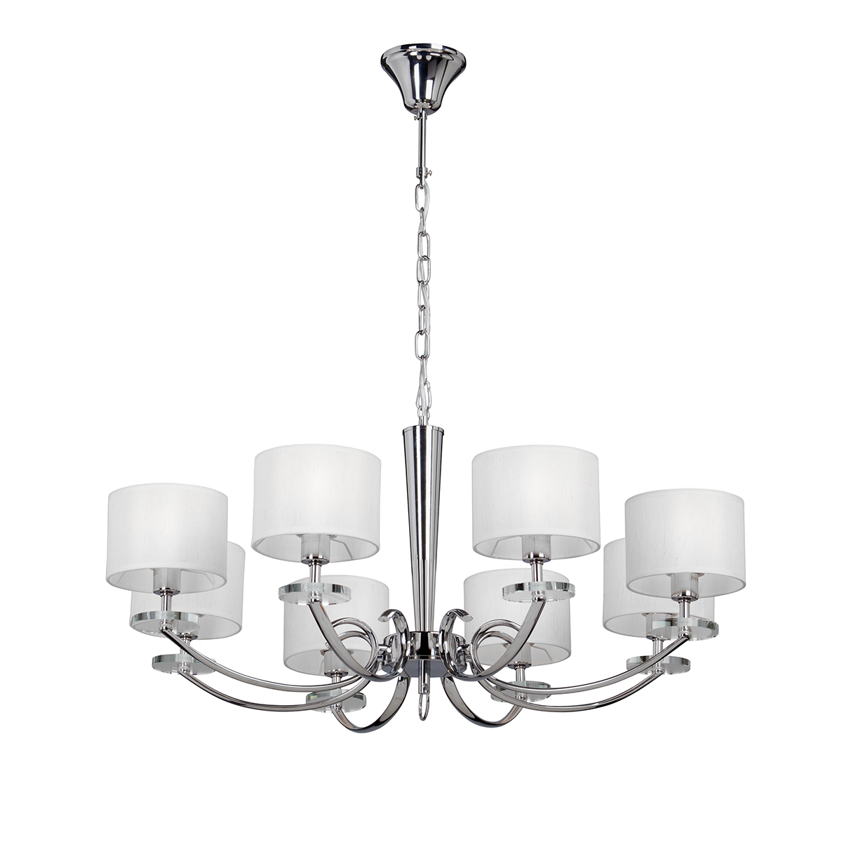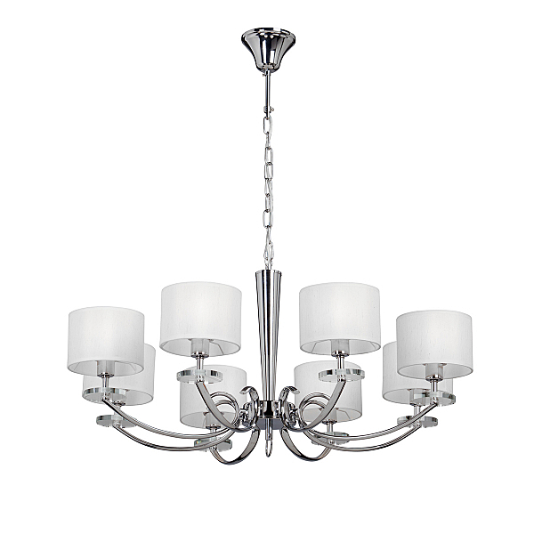 Допускается отличие страны-изготовителя, указанной в характеристиках. Линии производства могут находиться в нескольких государствах. Это не влияет на качество изготовления товара: все заводы данного бренда работают по общим стандартам, а готовые изделия проходят соответствующий контроль.Россия ЦветЦвет арматуры Хром Цвет Хром Материал арматуры Металл Материал декора Стекло Материал плафона Ткань РазмерыВысота (мм) 790 Диаметр (мм) 400 Ширина (мм) 400 ЭлектрикаКоличество ламп (шт) 8 Цоколь E14 Лампочки в комплекте Нет в комплекте Мощность лампы (Вт) 40 Общая мощность (Вт) 320 Напряжение (В) 220 Площадь освещения 16 Дополнительная информацияСпособ крепления Крюк Вес (Кг) 3,1 Тип подвеса На цепи -