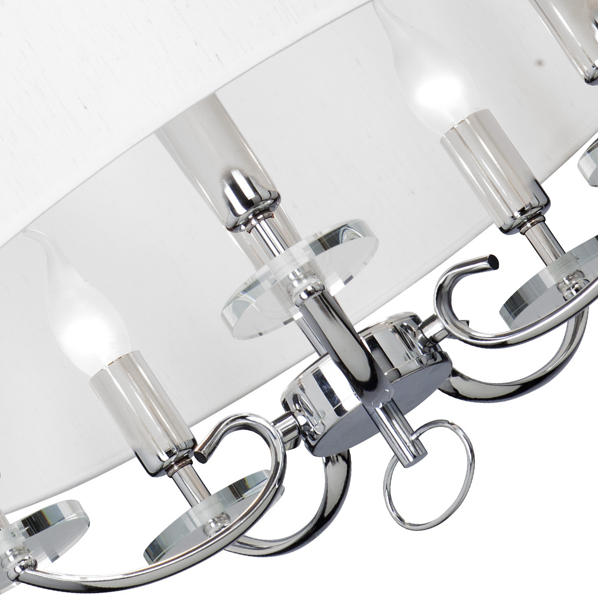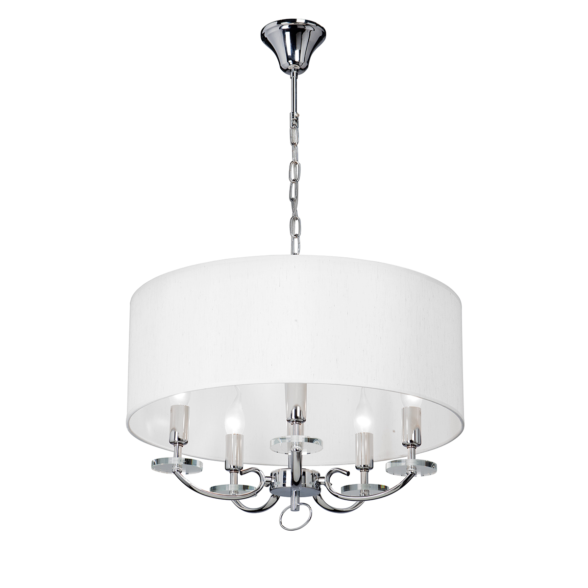 Допускается отличие страны-изготовителя, указанной в характеристиках. Линии производства могут находиться в нескольких государствах. Это не влияет на качество изготовления товара: все заводы данного бренда работают по общим стандартам, а готовые изделия проходят соответствующий контроль.Россия ЦветЦвет арматуры Хром Цвет Хром Материал арматуры Металл Материал декора Стекло Материал плафона Ткань РазмерыВысота (мм) 540 Диаметр (мм) 400 Ширина (мм) 400 ЭлектрикаКоличество ламп (шт) 5 Цоколь E14 Лампочки в комплекте Нет в комплекте Мощность лампы (Вт) 40 Общая мощность (Вт) 200 Напряжение (В) 220 Площадь освещения 10 Дополнительная информацияСпособ крепления Крюк Вес (Кг) 2,55 Тип подвеса На цепи -