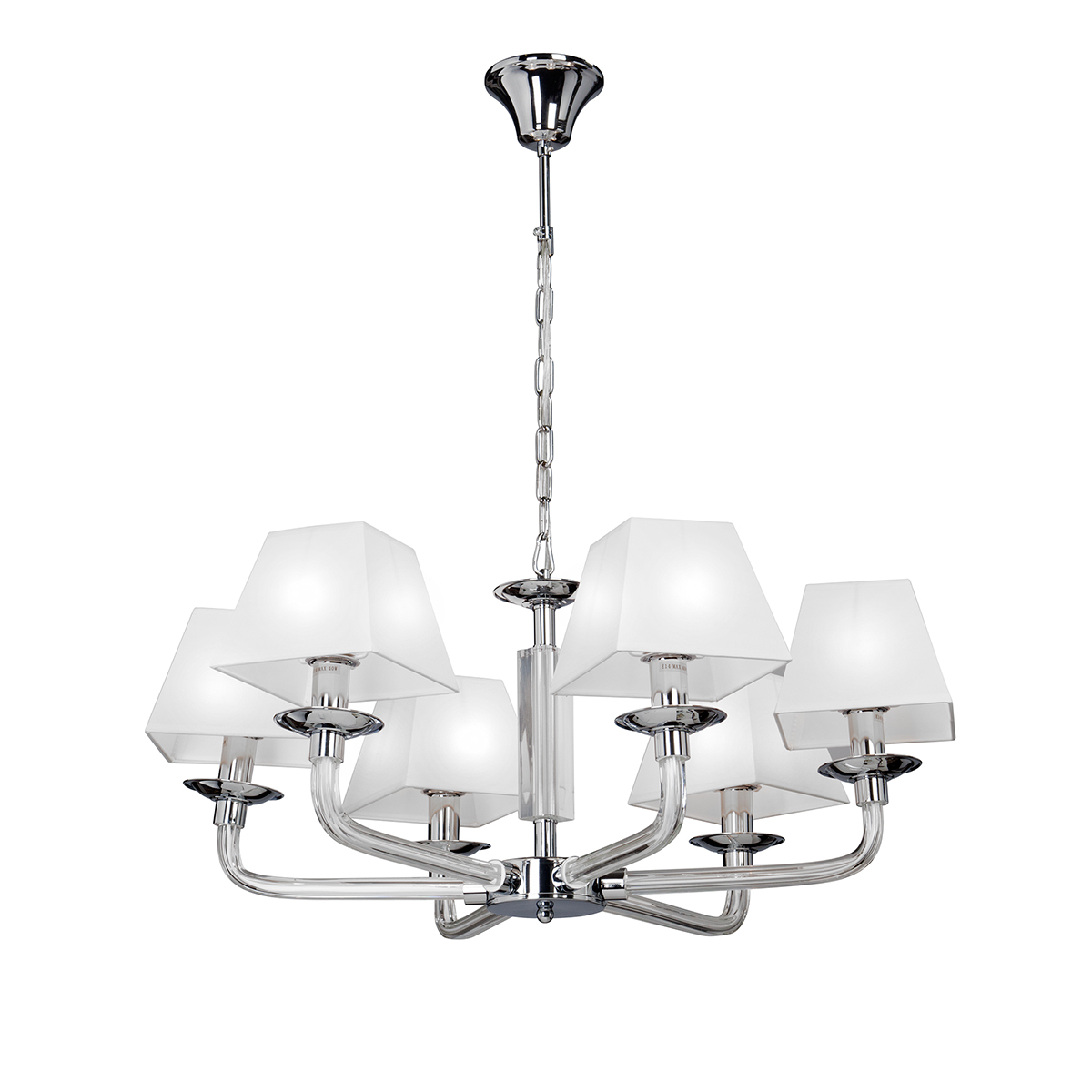 Допускается отличие страны-изготовителя, указанной в характеристиках. Линии производства могут находиться в нескольких государствах. Это не влияет на качество изготовления товара: все заводы данного бренда работают по общим стандартам, а готовые изделия проходят соответствующий контроль.Россия ЦветЦвет арматуры Хром Цвет Хром Материал арматуры Металл Материал декора Стекло Материал плафона Ткань РазмерыВысота (мм) 720 Диаметр (мм) 320 Ширина (мм) 320 ЭлектрикаКоличество ламп (шт) 6 Цоколь E14 Лампочки в комплекте Нет в комплекте Мощность лампы (Вт) 40 Общая мощность (Вт) 240 Напряжение (В) 220 Площадь освещения 12 Дополнительная информацияСпособ крепления Крюк Вес (Кг) 3,3 Тип подвеса На цепи -