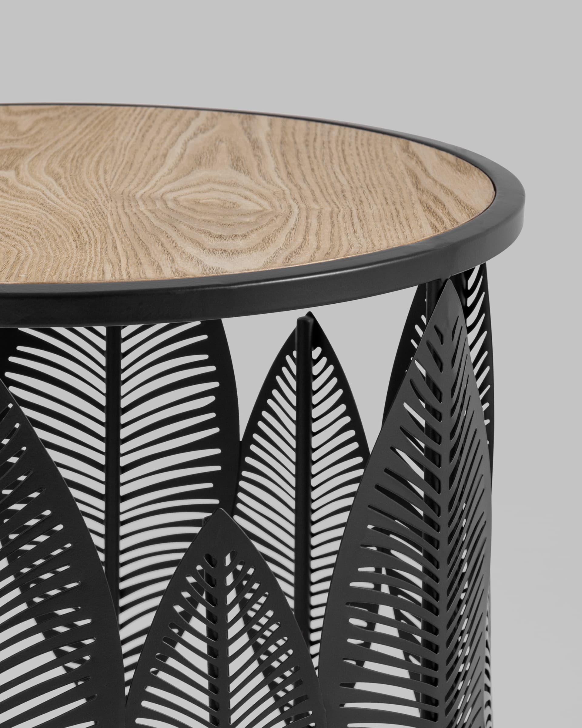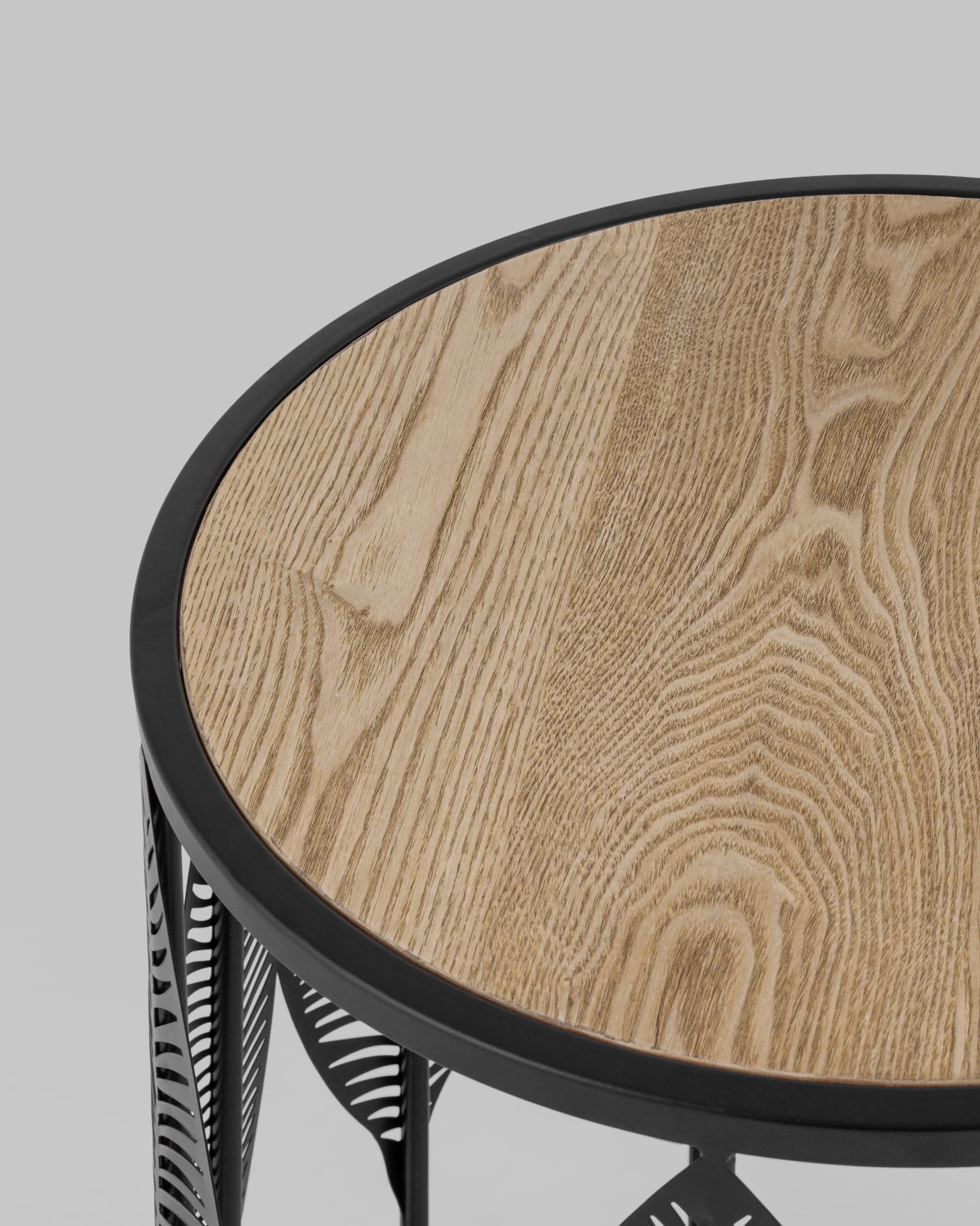 Журнальный столик Вальд черный каркас столешница светлое дерево