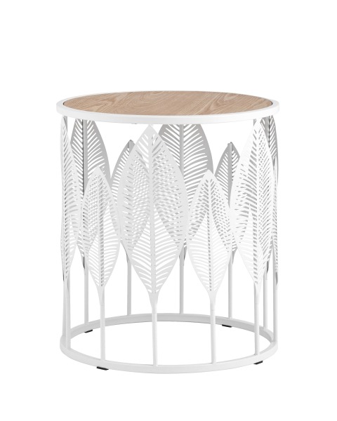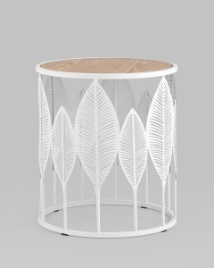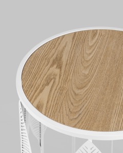 Журнальный столик Вальд белый каркас столешница светлое дерево