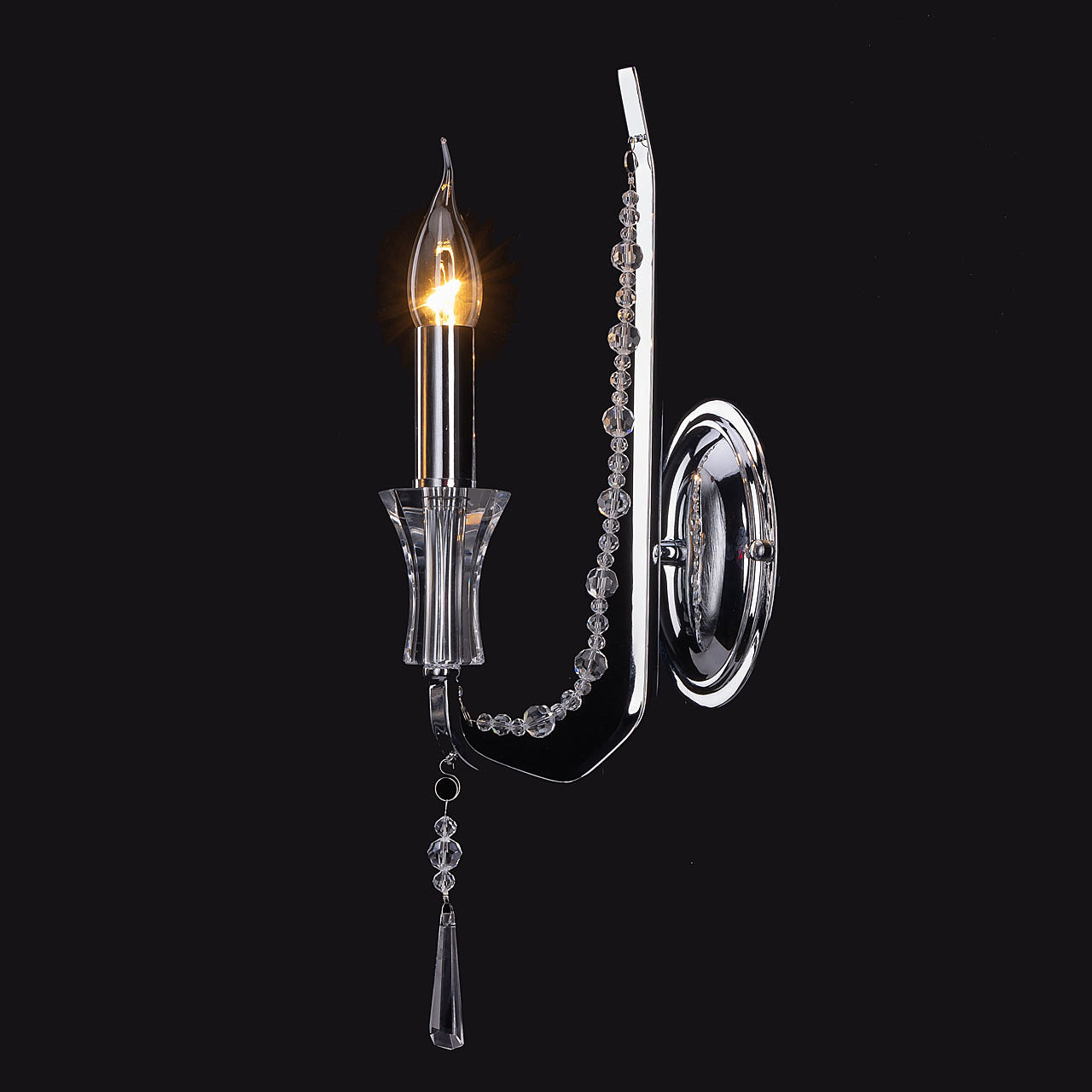 Трендовое сочетание хрусталя и цвета хрома выглядит актуально и современно.Хрустальный декор высокого качества придает настенному бра парадность и легкость.Заменяемые источники света удобны в эксплуатации.