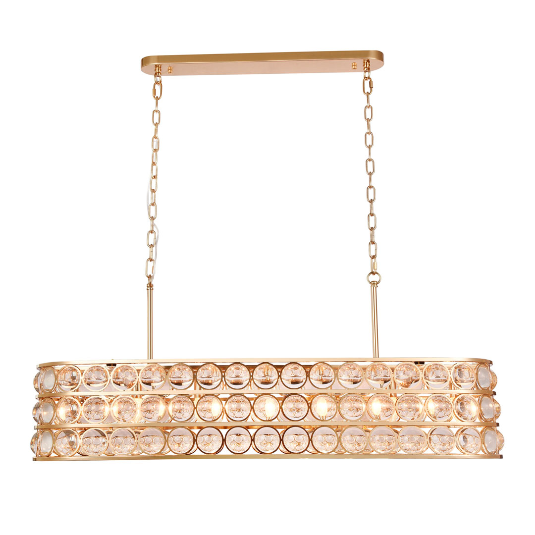 Допускается отличие страны-изготовителя, указанной в характеристиках. Линии производства могут находиться в нескольких государствах. Это не влияет на качество изготовления товара: все заводы данного бренда работают по общим стандартам, а готовые изделия проходят соответствующий контроль.Россия Коллекция Valent ЦветЦвет арматуры золото блестящее Цвет Золото Материал арматуры Металл РазмерыВысота (мм) 470 Длина (мм) 1200 Диаметр (мм) 310 Высота минимальная (мм) 240 Ширина (мм) 310 ЭлектрикаКоличество ламп (шт) 7 Цоколь E14 Тип лампы Светодиодная Мощность лампы (Вт) 6 Дополнительная информацияТип подвеса На цепи -