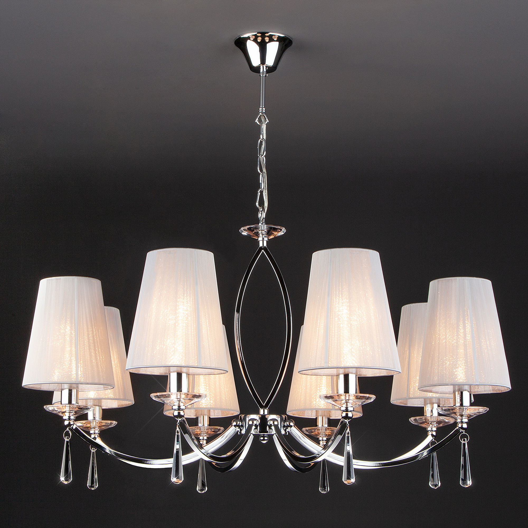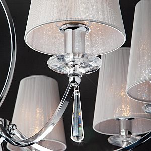 Допускается отличие страны-изготовителя, указанной в характеристиках. Линии производства могут находиться в нескольких государствах. Это не влияет на качество изготовления товара: все заводы данного бренда работают по общим стандартам, а готовые изделия проходят соответствующий контроль.Китай Коллекция Valery ЦветЦвет арматуры Хром Цвет Хром Материал арматуры Металл Цвет декора прозрачный Цвет плафона Серый Материал декора Хрусталь Материал плафона Ткань РазмерыВысота (мм) 940 Длина (мм) 780 Высота минимальная (мм) 430 Ширина (мм) 780 ЭлектрикаКоличество ламп (шт) 8 Цоколь E14 Лампочки в комплекте Нет в комплекте Мощность лампы (Вт) 40 Напряжение (В) 220 Площадь освещения 21 Дополнительная информацияСпособ крепления Крюк Степень защиты (IP) IP20 Тип подвеса На цепи -