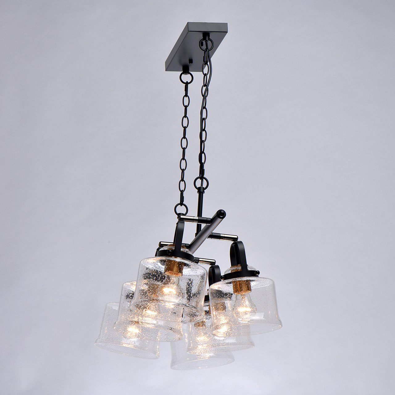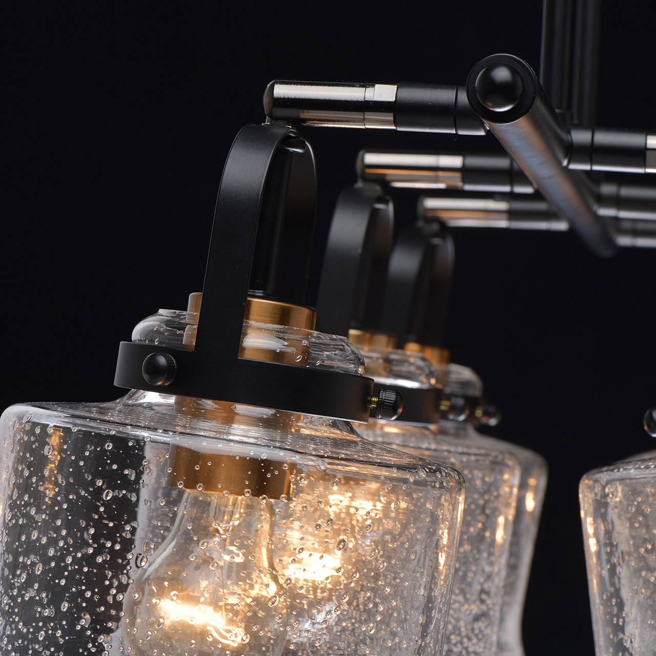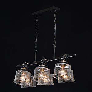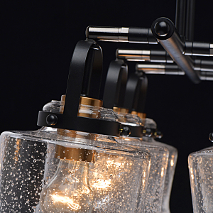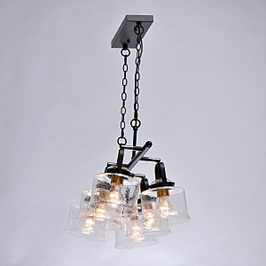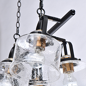 Оригинальный дизайн в брутальной стилистикеПрозрачные плафоны с эффектом инея отлично пропускают свет и декорируют его источники.Изюминкой декора являются напатронники ламп в бронзовом цвете. Функциональной особенностью конструкции стали поворотные механизмы плафоновРегулируемая длина цепиПолная семья для общего и зонального освещения.