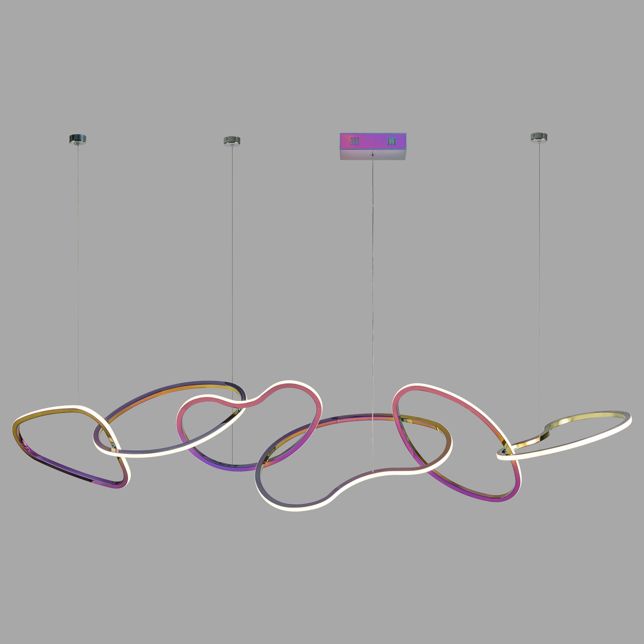 Допускается отличие страны-изготовителя, указанной в характеристиках. Линии производства могут находиться в нескольких государствах. Это не влияет на качество изготовления товара: все заводы данного бренда работают по общим стандартам, а готовые изделия проходят соответствующий контроль.Италия Коллекция Vanessa ЦветЦвет арматуры радужный Цвет Разноцветные Материал арматуры Металл Цвет плафона радужный Материал плафона Акрил РазмерыВысота (мм) 2800 Длина (мм) 1780 Высота минимальная (мм) 378 Ширина (мм) 300 ЭлектрикаКоличество ламп (шт) 1 Цоколь LED Тип лампы Светодиодная Мощность лампы (Вт) 58 Напряжение (В) 220 Цветовая температура 3000 Площадь освещения 20 Дополнительная информацияСпособ крепления Планка Степень защиты (IP) IP20 Тип подвеса На тросах -