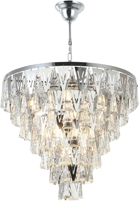 Люстра подвесная из коллекции Vaviani выполнена из металла, гальванизированного в цвет хрома, и декорирована прозрачным хрусталем высшей категории треугольной формы и тонкими треугольниками из нержавеющей стали, отполированной до зеркального блеска и гальванизированной в цвет арматуры. Люстра коллекции выглядит стильно и респектабельно. Премиальное качество и неповторимыи? дизаи?н светильников идеально подои?дут как в классические, так и современные дизайнерские интерьеры.