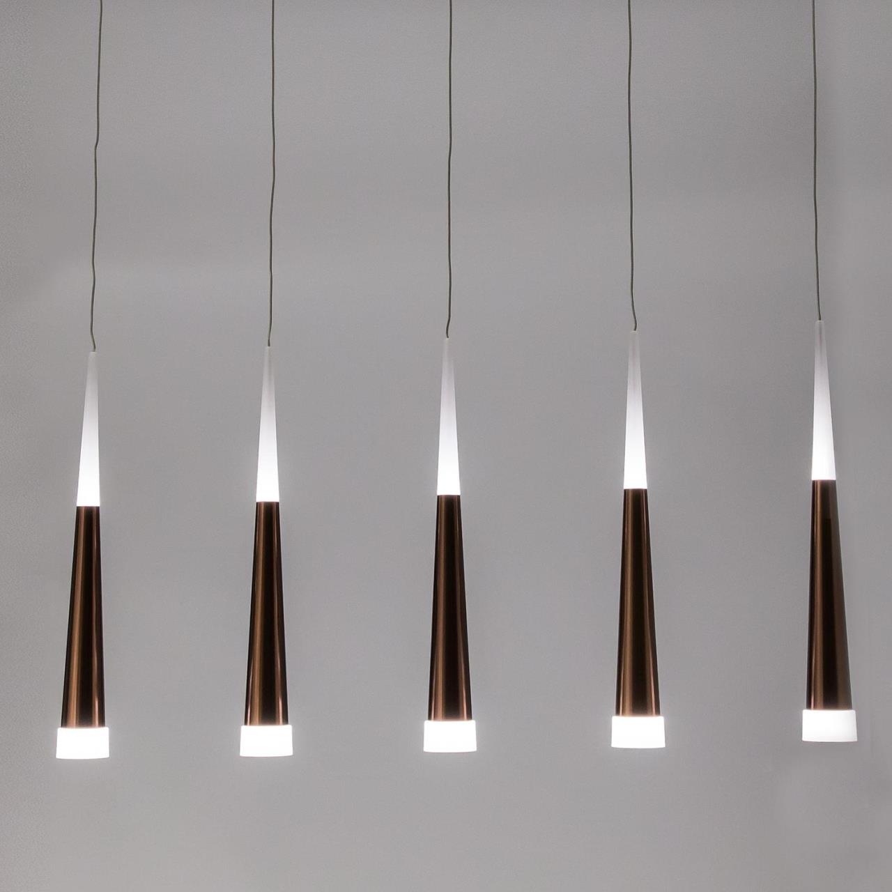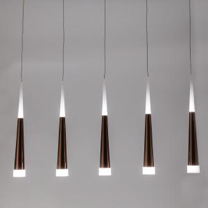 Допускается отличие страны-изготовителя, указанной в характеристиках. Линии производства могут находиться в нескольких государствах. Это не влияет на качество изготовления товара: все заводы данного бренда работают по общим стандартам, а готовые изделия проходят соответствующий контроль.Дания Коллекция Вегас ЦветЦвет арматуры Кофейный Цвет Кофейный Материал арматуры Металл Цвет плафона кофейный Материал плафона Оптический полимер РазмерыВысота (мм) 1600 Длина (мм) 930 Высота минимальная (мм) 500 Ширина (мм) 100 ЭлектрикаКоличество ламп (шт) 5 Цоколь LED Тип лампы Светодиодная Мощность лампы (Вт) 7 Общая мощность (Вт) 35 Световой поток 2275 Цветовая температура теплый (3000k) Площадь освещения 12 Дополнительная информацияСпособ крепления Планка Степень защиты (IP) IP20 Вес (Кг) 4.400 Техническая оссобеность Полностью светодиодная Тип подвеса На тросах Количество подвесов Много подвесных элементов -
