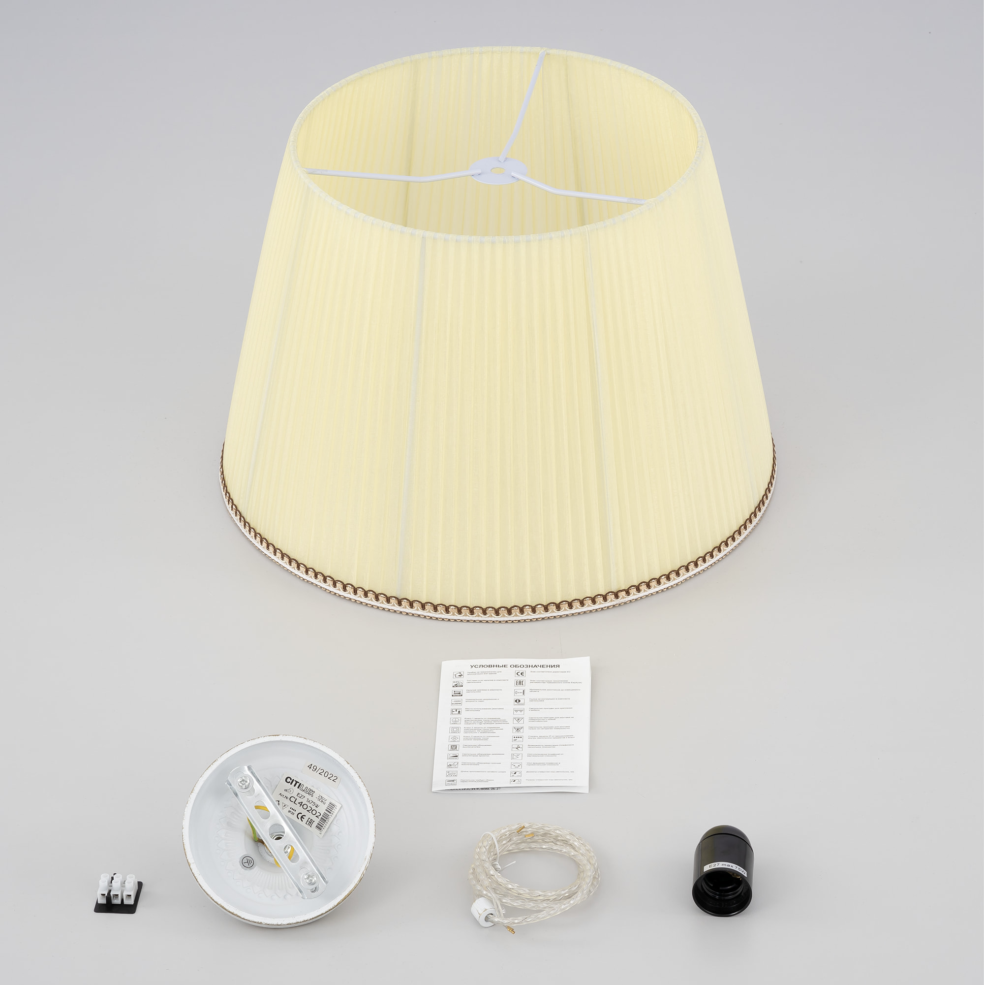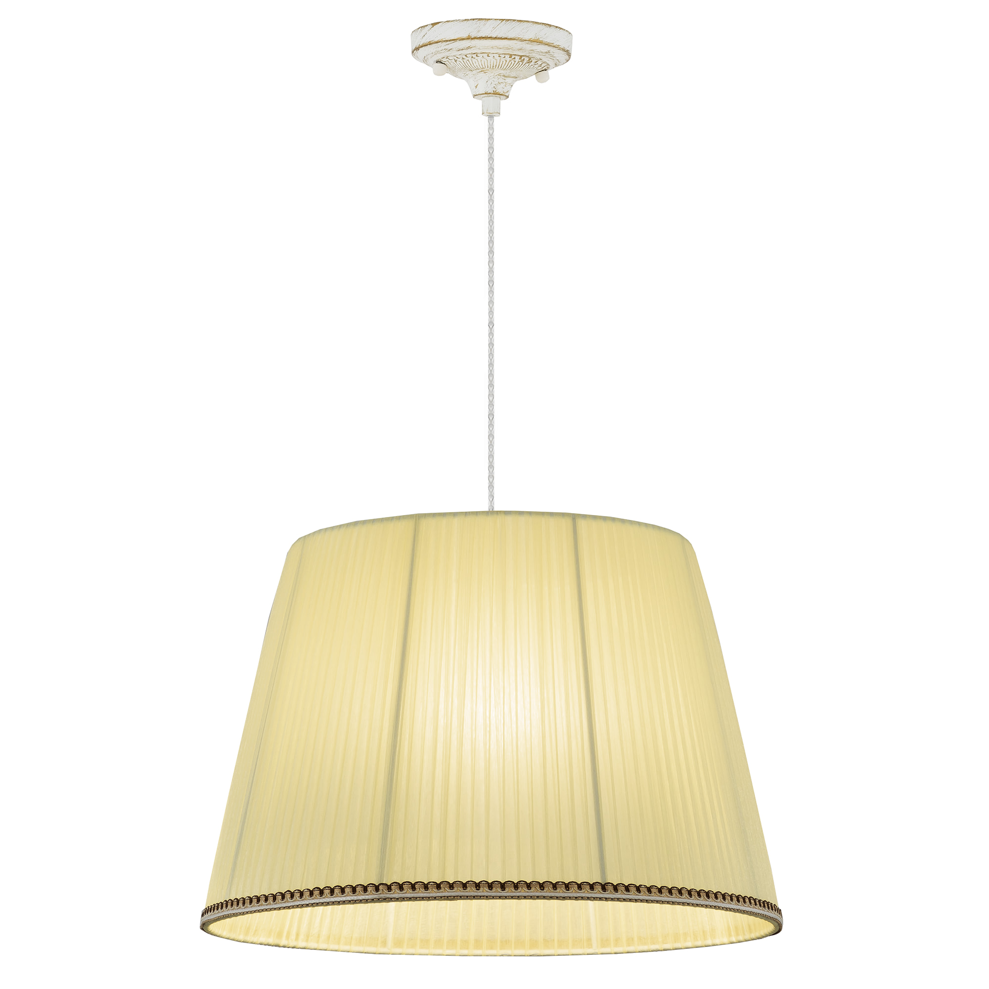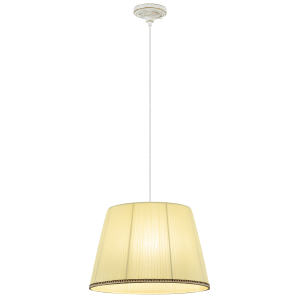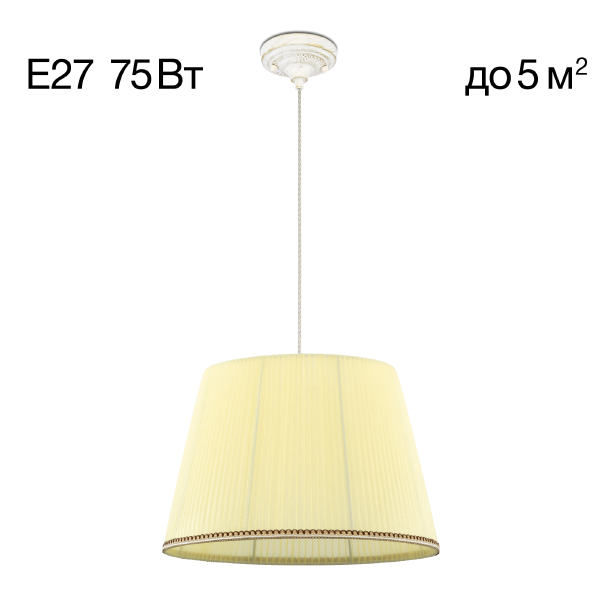 Допускается отличие страны-изготовителя, указанной в характеристиках. Линии производства могут находиться в нескольких государствах. Это не влияет на качество изготовления товара: все заводы данного бренда работают по общим стандартам, а готовые изделия проходят соответствующий контроль.Дания Коллекция Вена ЦветЦвет арматуры белый с золотом Цвет Кремовый Материал арматуры Металл Цвет плафона кремовый Материал плафона Текстиль РазмерыВысота (мм) 1450 Диаметр (мм) 420 Высота минимальная (мм) 350 Ширина (мм) 420 ЭлектрикаКоличество ламп (шт) 1 Цоколь E27 Тип лампы Накаливания, Светодиодные, Компактные люмин., Галогеновые Мощность лампы (Вт) 75 Общая мощность (Вт) 75 Световой поток 1100 Площадь освещения 5 Дополнительная информацияСтепень защиты (IP) IP20 Тип подвеса На тросах Количество подвесов Одиночный подвес -