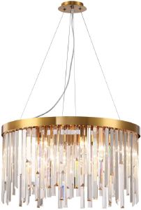 Допускается отличие страны-изготовителя, указанной в характеристиках. Линии производства могут находиться в нескольких государствах. Это не влияет на качество изготовления товара: все заводы данного бренда работают по общим стандартам, а готовые изделия проходят соответствующий контроль.Германия Коллекция Venecia ЦветЦвет арматуры Бронза Цвет Золото Материал арматуры Металл Цвет плафона прозрачный Материал плафона Хрусталь РазмерыВысота (мм) 450-920 Длина (мм) 600 Диаметр (мм) 600 Высота минимальная (мм) 450 Ширина (мм) 600 ЭлектрикаКоличество ламп (шт) 8 Цоколь E14 Лампочки в комплекте нет Мощность лампы (Вт) 40 Напряжение (В) 220 Площадь освещения 21 Дополнительная информацияСпособ крепления Планка Степень защиты (IP) IP20 Вес (Кг) 13,05 Диммирование Нет Тип подвеса На тросах -