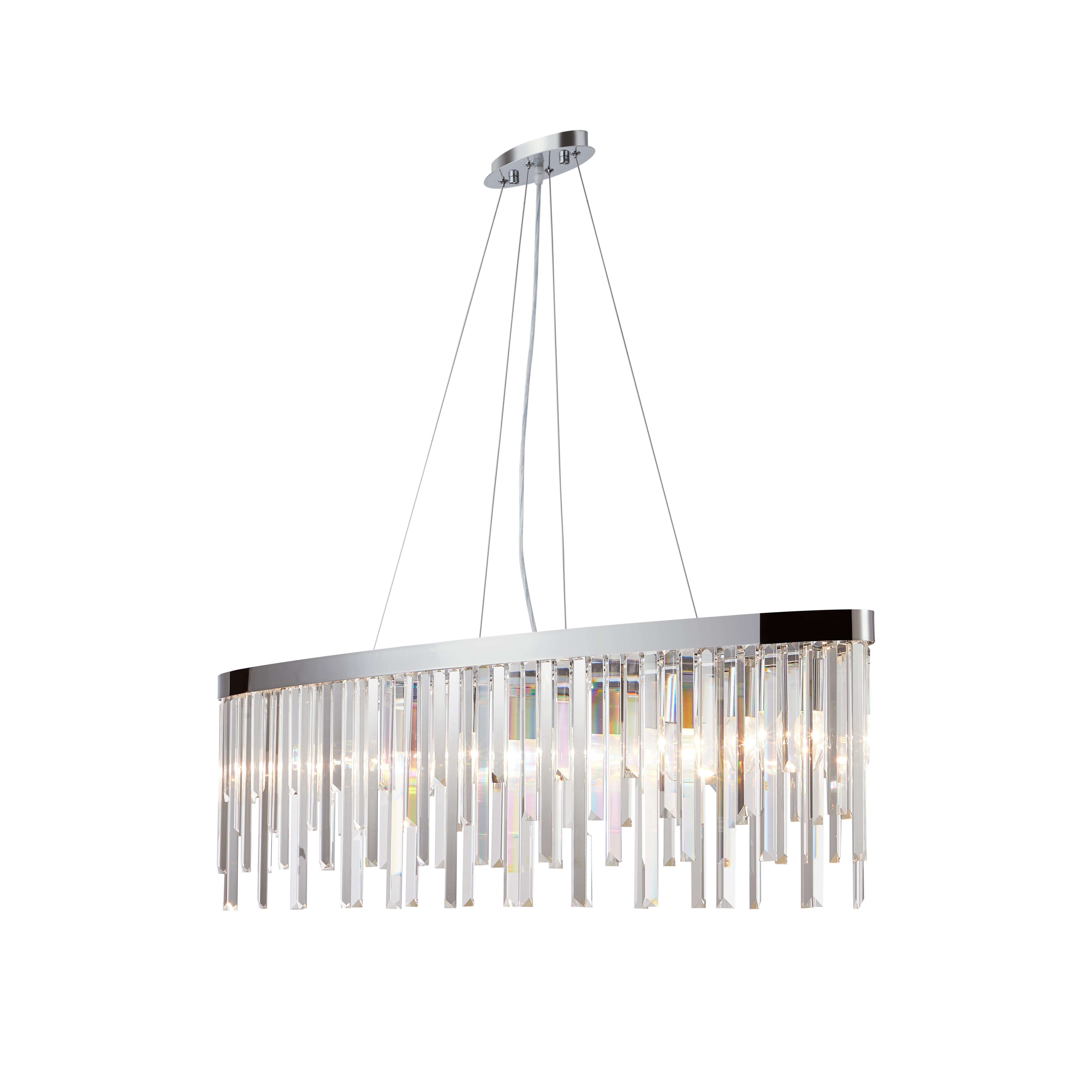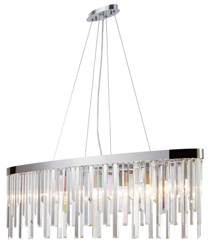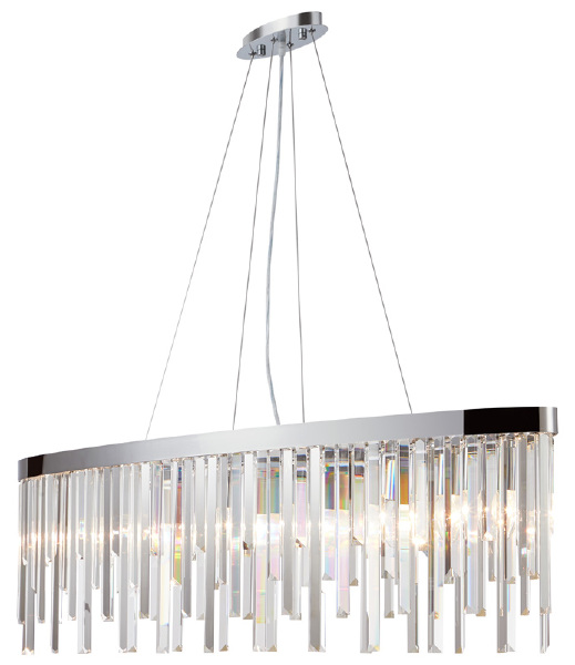 Люстра подвесная из коллекции Venecia вытянутой формы выполнена из металла, гальванизированного в цвет хрома, и декорирована прозрачным хрусталем высшей категории прямоугольной формы разной длины. Современная форма и высокое качество светильников идеально подойдут как в классические, так и современные интерьеры.