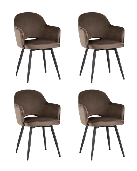 Комплект из четырех стульев Венера вращающийся велюр коричневый обеденный ножки металл черный