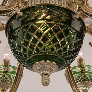 Допускается отличие страны-изготовителя, указанной в характеристиках. Линии производства могут находиться в нескольких государствах. Это не влияет на качество изготовления товара: все заводы данного бренда работают по общим стандартам, а готовые изделия проходят соответствующий контроль.Чехия Коллекция Verona ЦветЦвет арматуры золото белёное Цвет Зеленый Материал арматуры Латунь Цвет декора зеленый РазмерыВысота (мм) 700 Диаметр (мм) 690 Ширина (мм) 690 ЭлектрикаКоличество ламп (шт) 10 Цоколь E14 Мощность лампы (Вт) 40 Дополнительная информацияВес (Кг) 11 Тип подвеса На цепи -