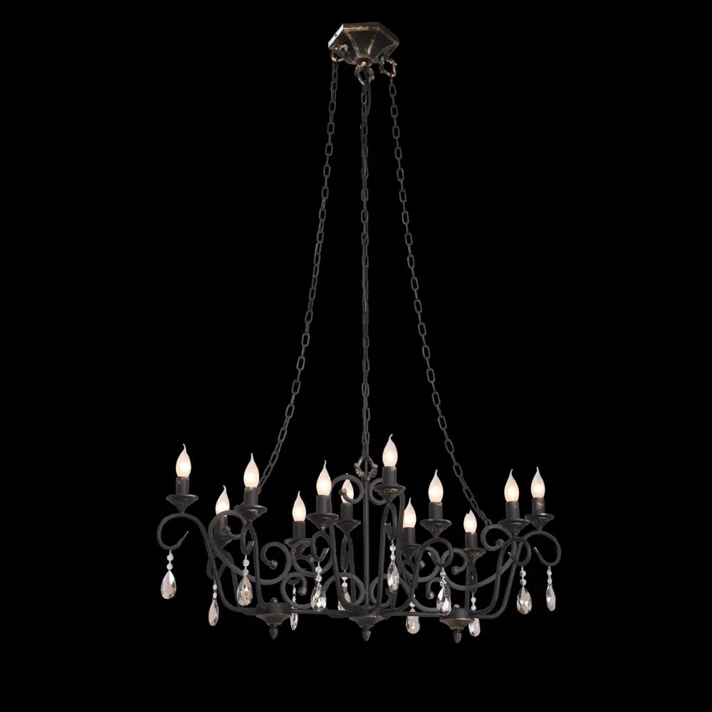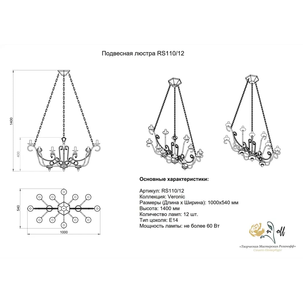 Допускается отличие страны-изготовителя, указанной в характеристиках. Линии производства могут находиться в нескольких государствах. Это не влияет на качество изготовления товара: все заводы данного бренда работают по общим стандартам, а готовые изделия проходят соответствующий контроль.Россия Коллекция Veronic ЦветЦвет арматуры Черный, состаренная бронза Цвет Черный Материал арматуры Металл РазмерыВысота (мм) 1400 Длина (мм) 1000 Ширина (мм) 540 ЭлектрикаКоличество ламп (шт) 12 Цоколь E14 Тип лампы Накаливания Мощность лампы (Вт) 60 Общая мощность (Вт) 720 Площадь освещения 30 Дополнительная информацияСтепень защиты (IP) IP20 Вес (Кг) 6 Тип подвеса На цепи -