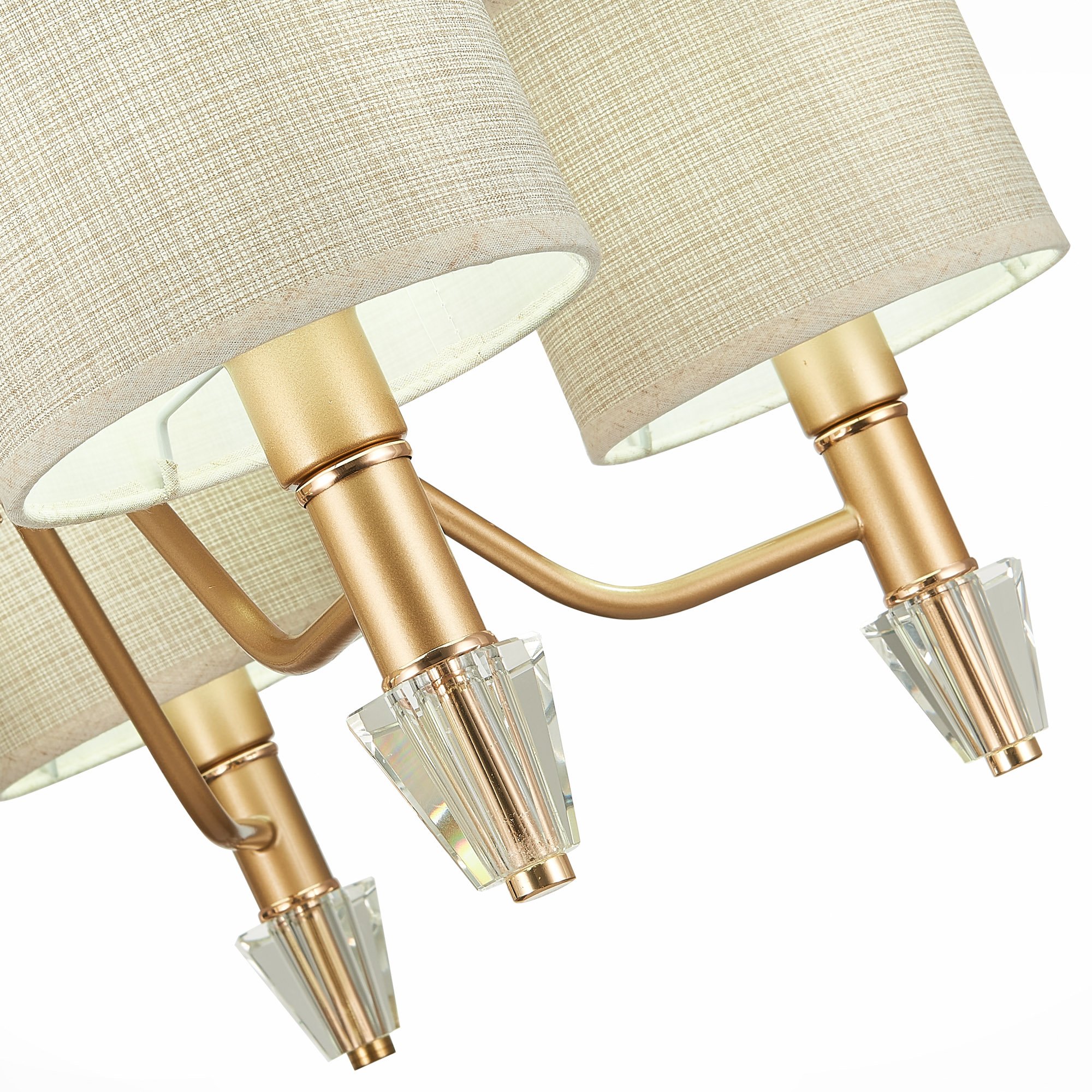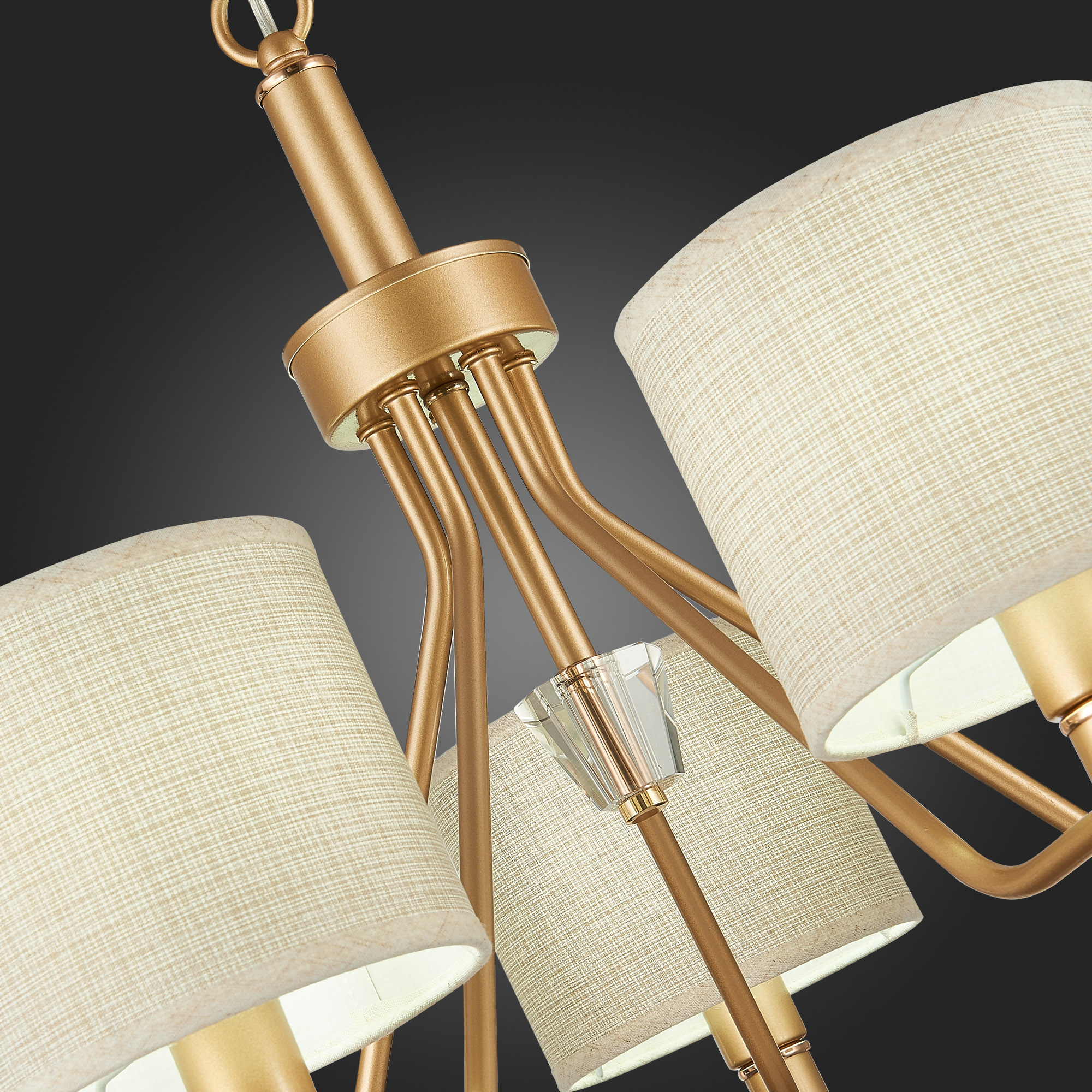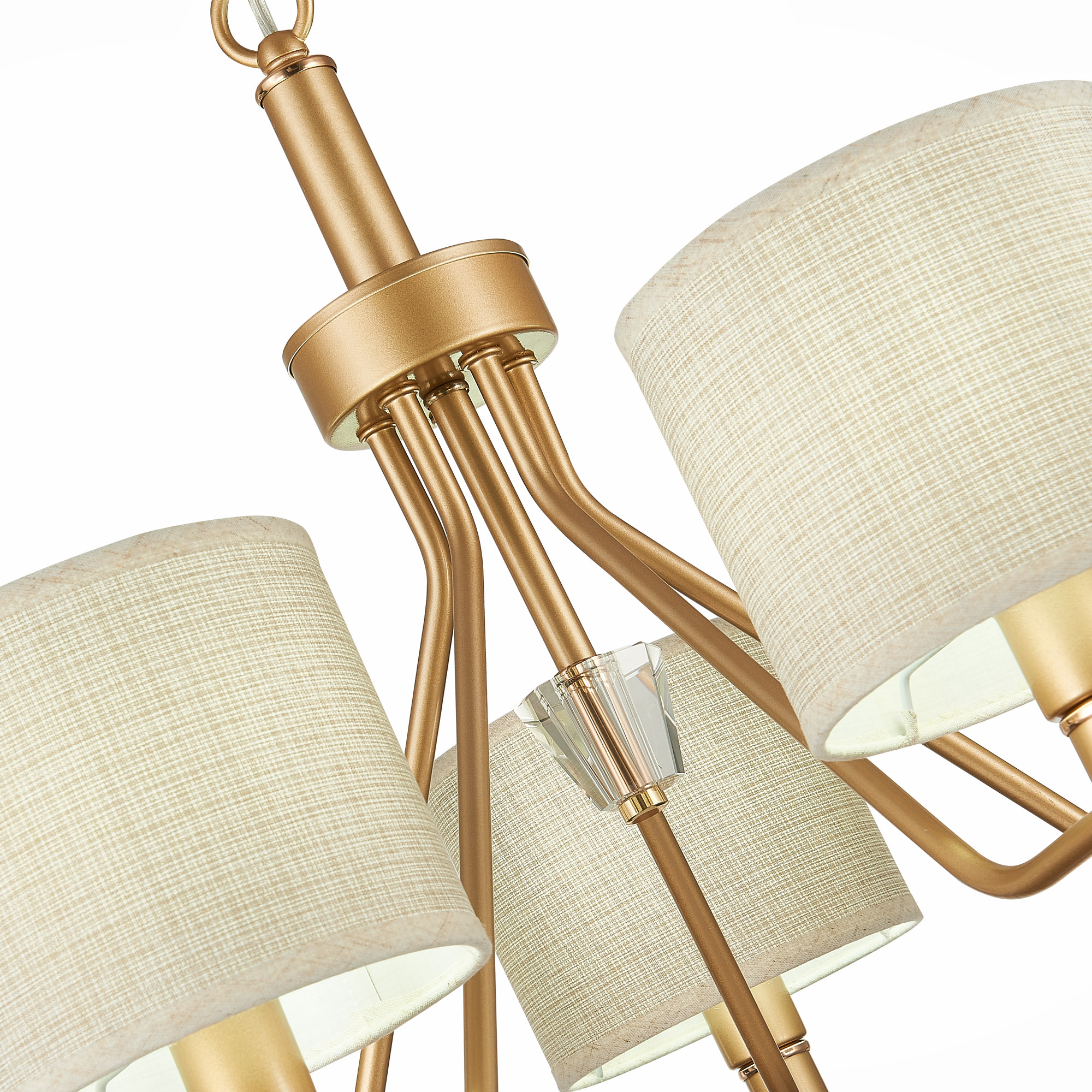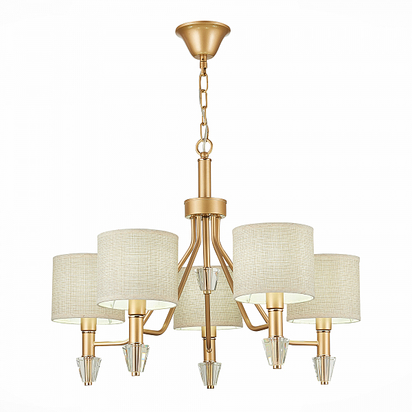 Допускается отличие страны-изготовителя, указанной в характеристиках. Линии производства могут находиться в нескольких государствах. Это не влияет на качество изготовления товара: все заводы данного бренда работают по общим стандартам, а готовые изделия проходят соответствующий контроль.Италия Коллекция Vilede ЦветЦвет арматуры Золото Цвет Золото Материал арматуры Металл, Хрусталь Цвет плафона бежевый Материал плафона Текстиль РазмерыВысота (мм) 850 Диаметр (мм) 610 Высота минимальная (мм) 460 Ширина (мм) 610 ЭлектрикаКоличество ламп (шт) 5 Цоколь E14 Тип лампы Накаливания Мощность лампы (Вт) 40 Общая мощность (Вт) 200 Площадь освещения 10 Дополнительная информацияСпособ крепления Крюк Тип подвеса На цепи -