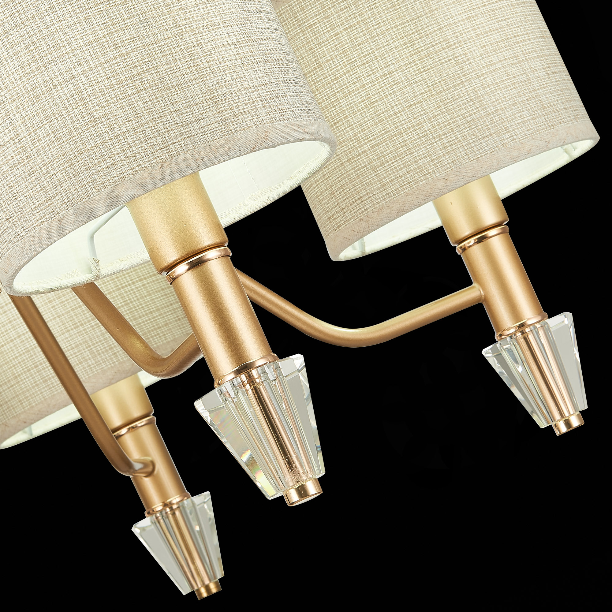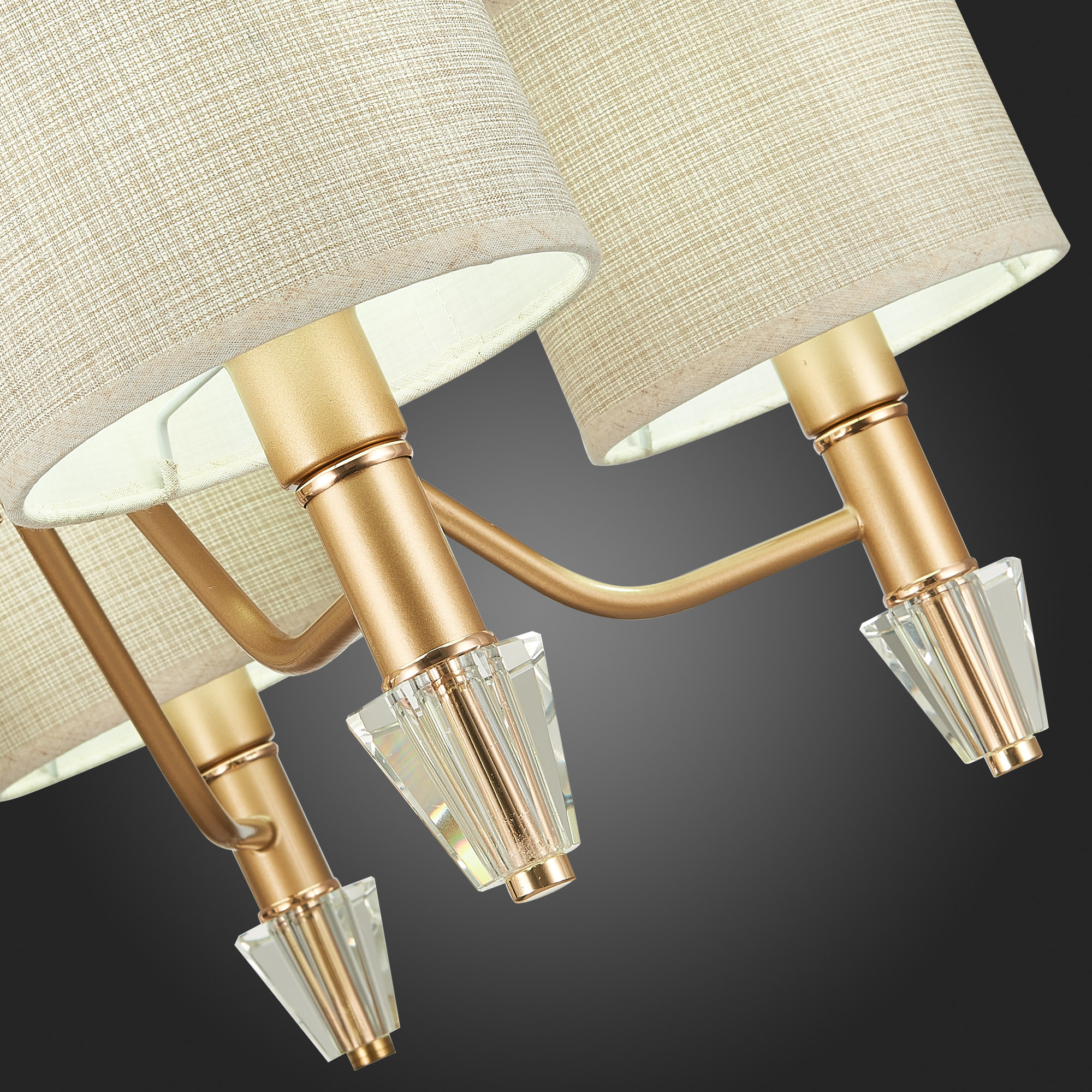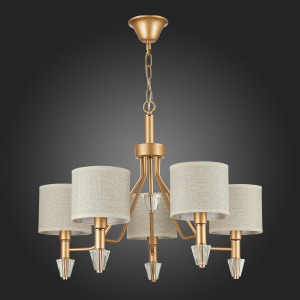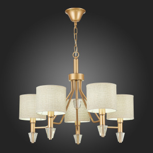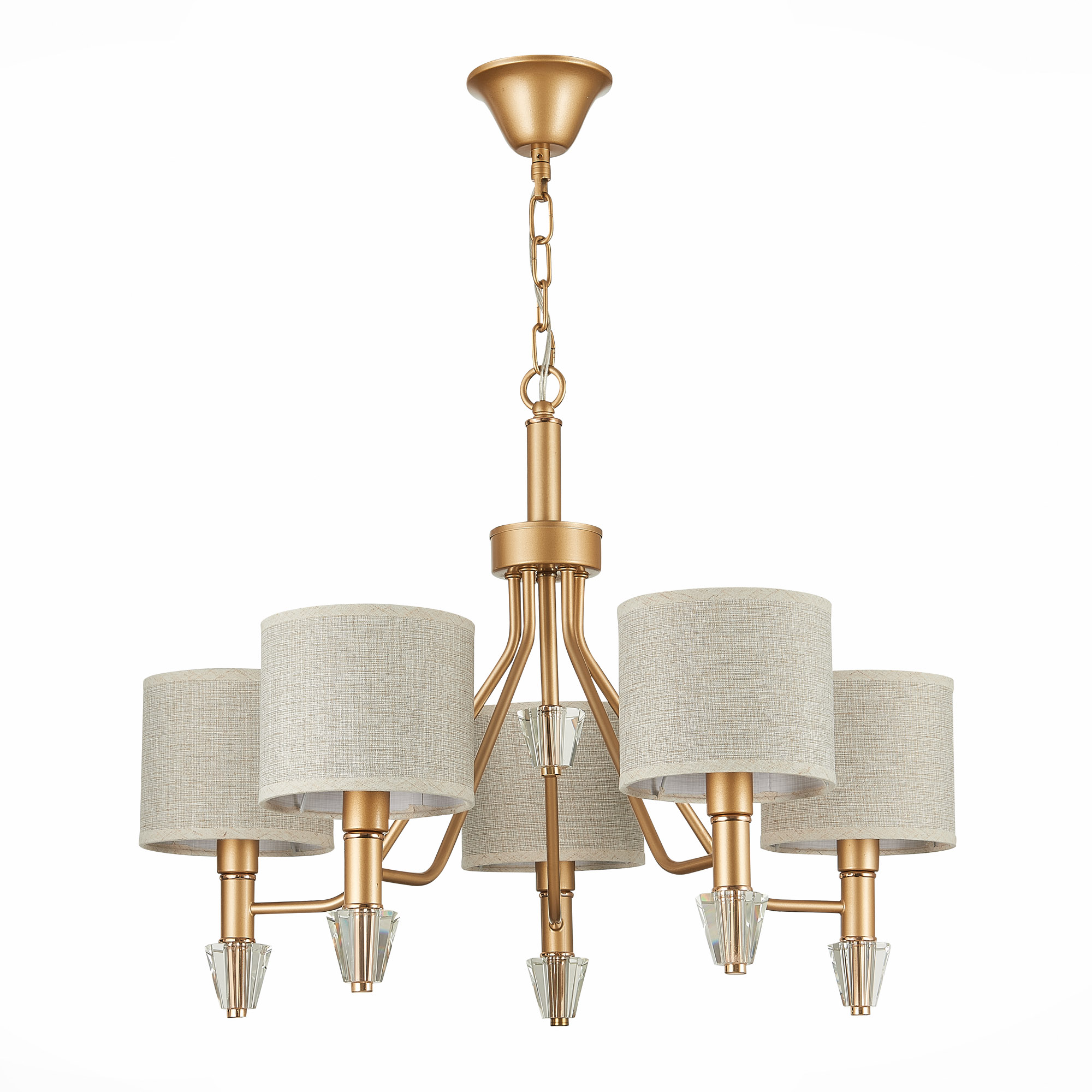 Допускается отличие страны-изготовителя, указанной в характеристиках. Линии производства могут находиться в нескольких государствах. Это не влияет на качество изготовления товара: все заводы данного бренда работают по общим стандартам, а готовые изделия проходят соответствующий контроль.Италия Коллекция Vilede ЦветЦвет арматуры Золото Цвет Золото Материал арматуры Металл, Хрусталь Цвет плафона бежевый Материал плафона Текстиль РазмерыВысота (мм) 850 Диаметр (мм) 610 Высота минимальная (мм) 460 Ширина (мм) 610 ЭлектрикаКоличество ламп (шт) 5 Цоколь E14 Тип лампы Накаливания Мощность лампы (Вт) 40 Общая мощность (Вт) 200 Площадь освещения 10 Дополнительная информацияСпособ крепления Крюк Тип подвеса На цепи -