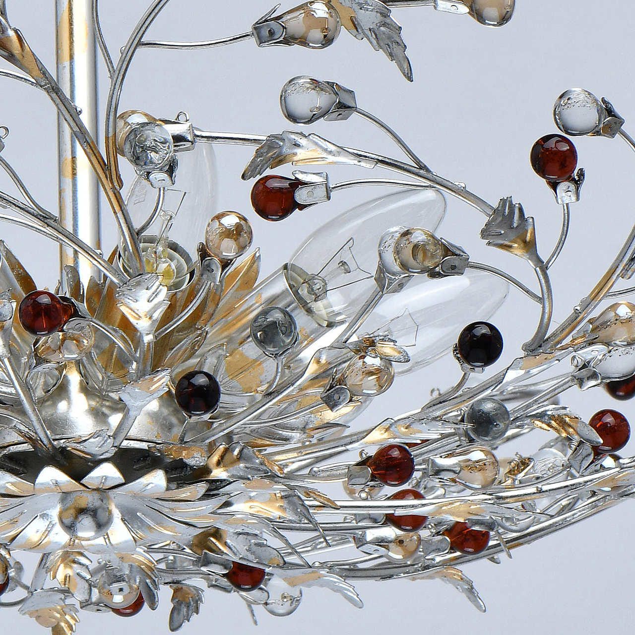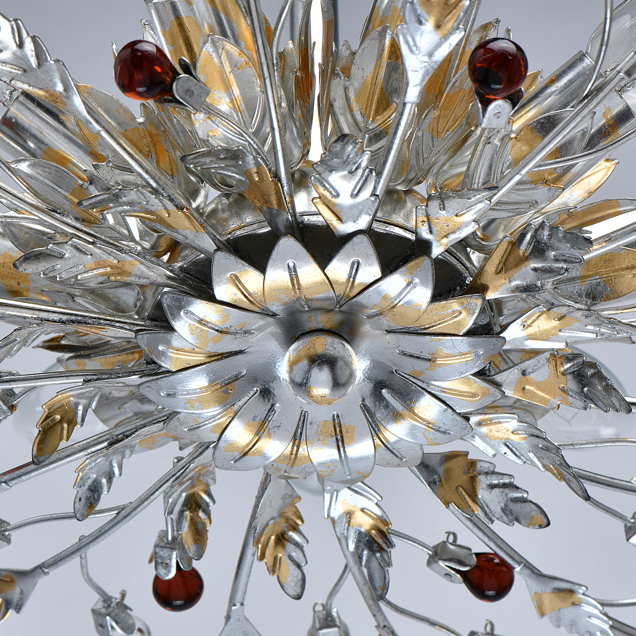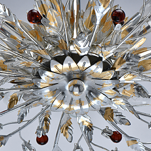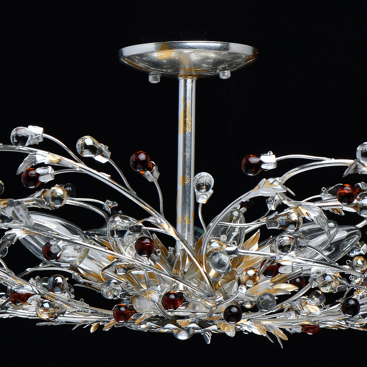 Флористический декор из цветного хрусталя миниатюрен.Покрытие сусальным золотом и серебром ручной работы.Большой диаметр светильника обеспечивает высокие параметры освещенности.Компактная высота актуальна для стандартной высоты потолка.Широкая семья включает бра, потолочные светильники на 6 и 9 рожков и подвесов на 6 и 9 рожков.