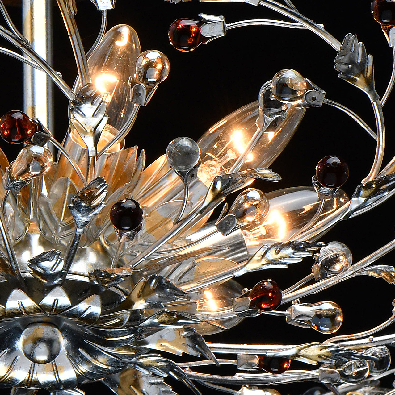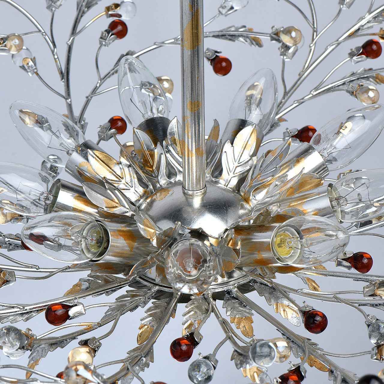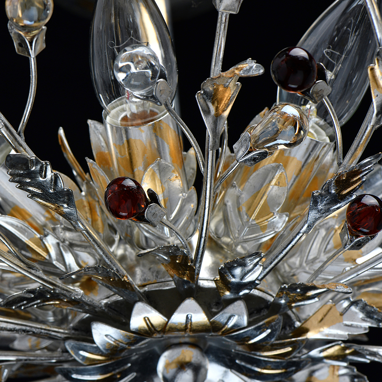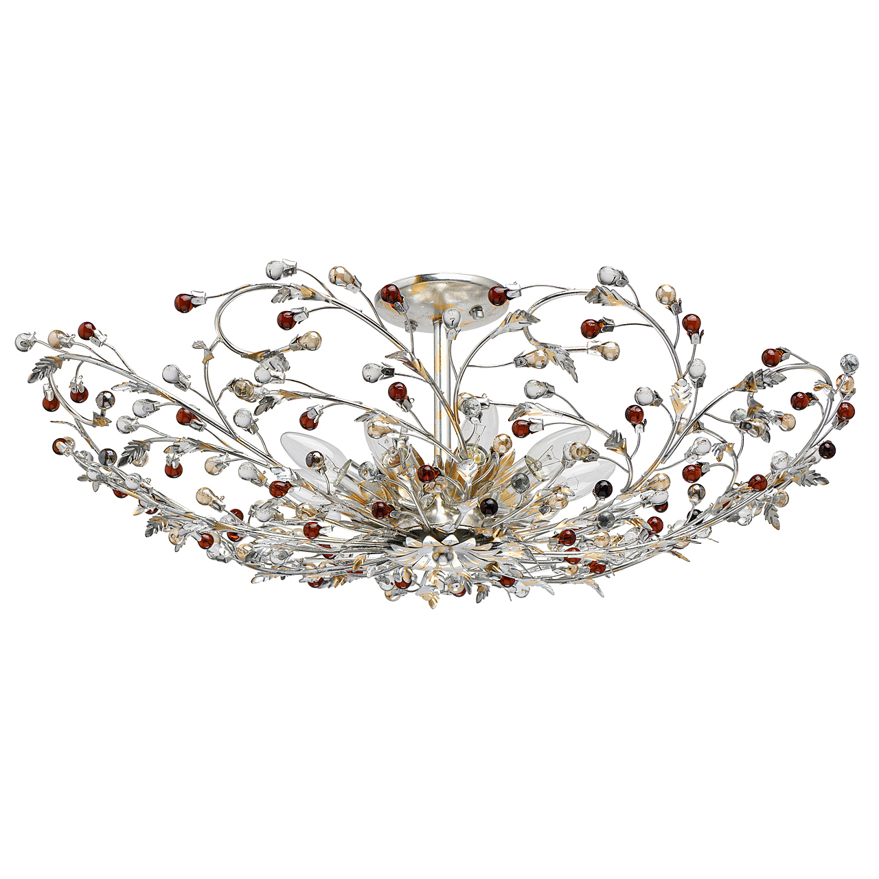 Флористический декор из цветного хрусталя миниатюрен.Покрытие сусальным золотом и серебром ручной работы.Большой диаметр светильника обеспечивает высокие параметры освещенности.Компактная высота актуальна для стандартной высоты потолка.Широкая семья включает бра, потолочные светильники на 6 и 9 рожков и подвесов на 6 и 9 рожков.