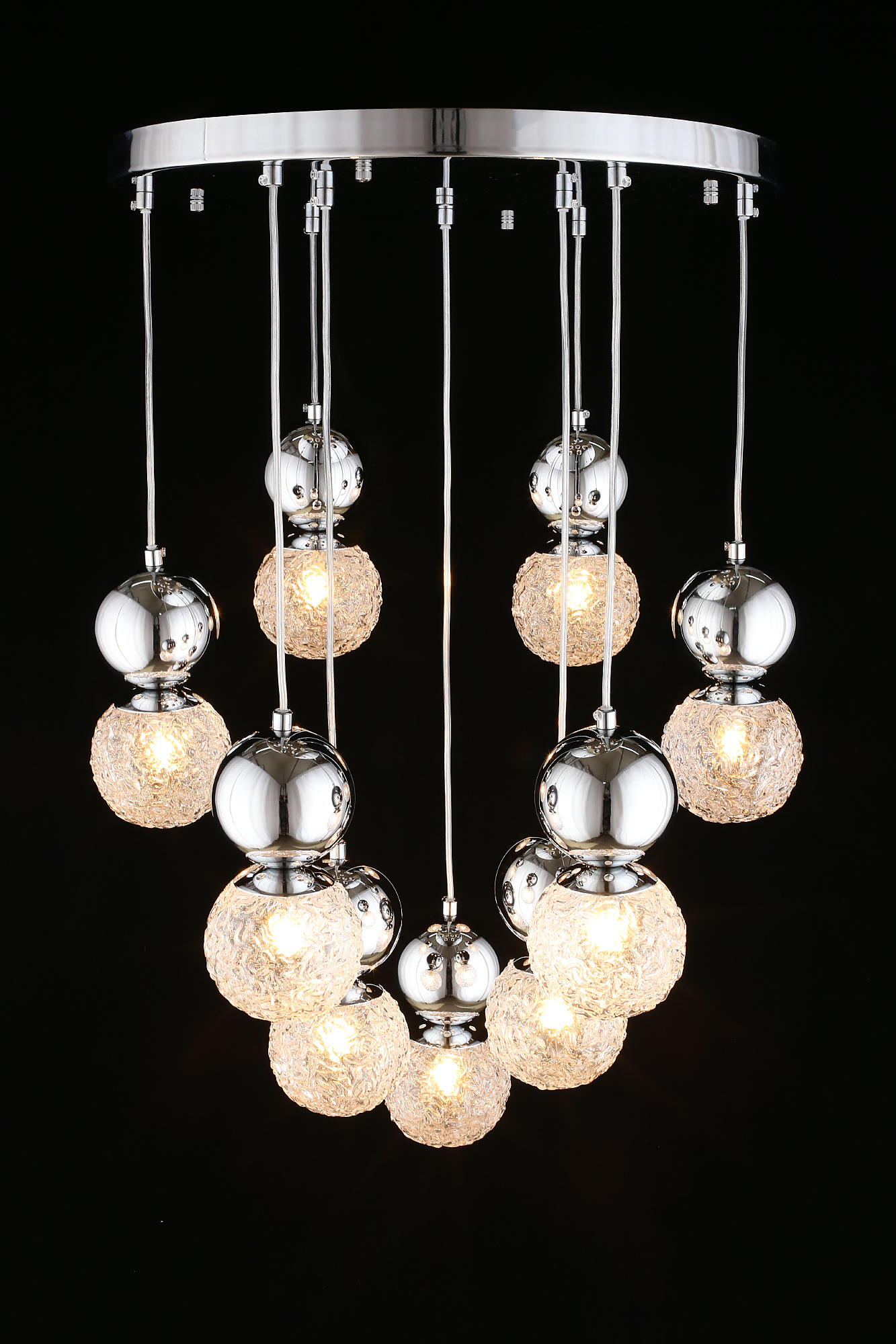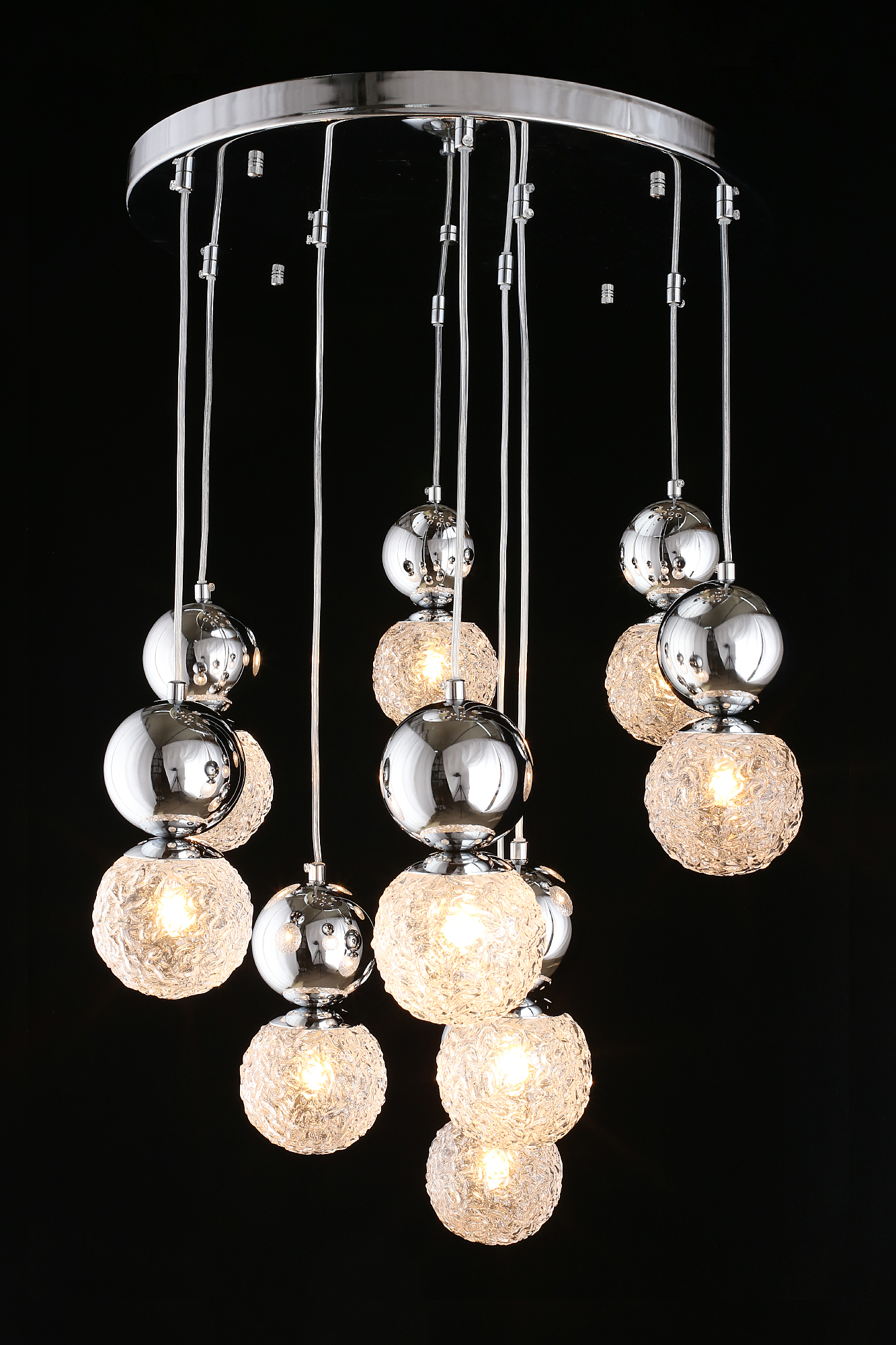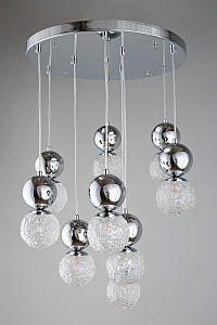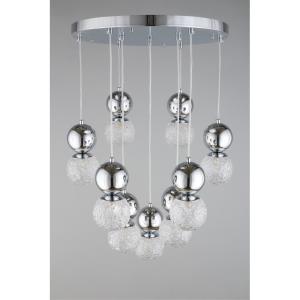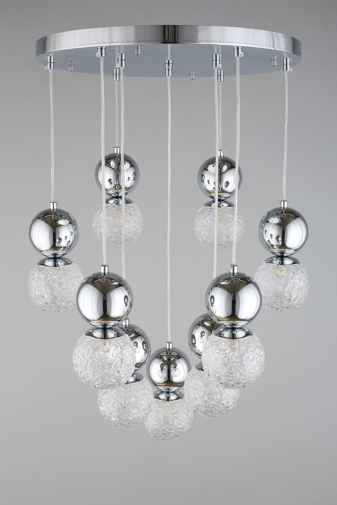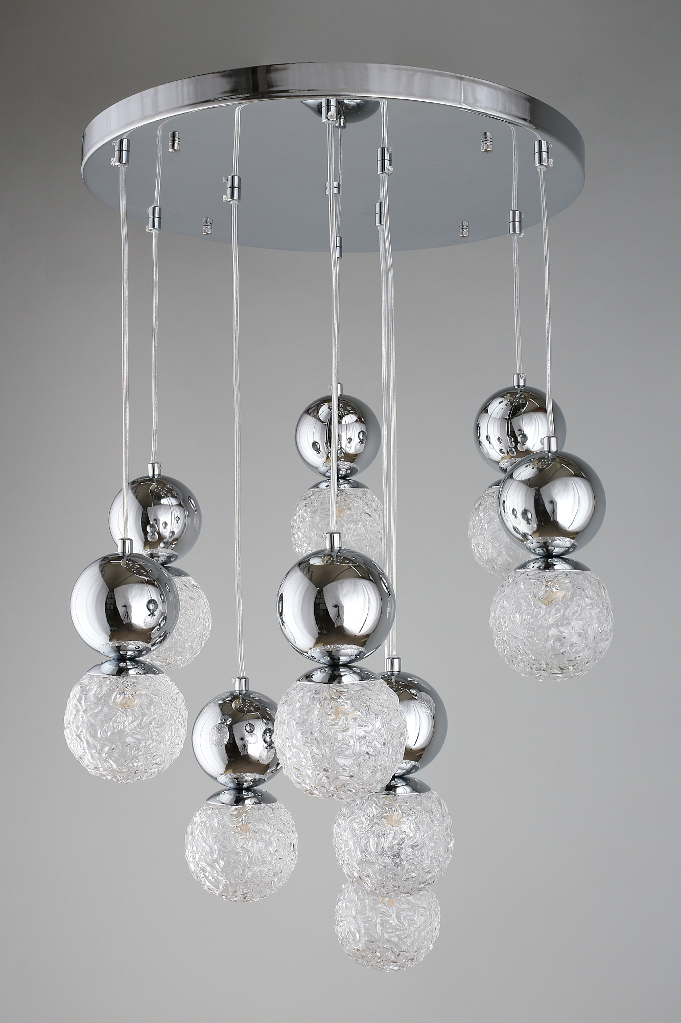 Допускается отличие страны-изготовителя, указанной в характеристиках. Линии производства могут находиться в нескольких государствах. Это не влияет на качество изготовления товара: все заводы данного бренда работают по общим стандартам, а готовые изделия проходят соответствующий контроль.Польша Коллекция Violet ЦветЦвет арматуры Хром Цвет Хром Материал арматуры Металл Цвет декора хром Цвет плафона прозрачный Материал декора Металл Материал плафона Стекло РазмерыВысота (мм) 1500 Диаметр (мм) 580 Высота минимальная (мм) 500 Ширина (мм) 580 ЭлектрикаКоличество ламп (шт) 9 Цоколь G9 Тип лампы Светодиодная Лампочки в комплекте Нет в комплекте Мощность лампы (Вт) 5 Общая мощность (Вт) 45 Световой поток 2475 Дополнительная информацияСпособ крепления Планка Вес (Кг) 7.6 Тип подвеса На тросах Количество подвесов Много подвесных элементов -