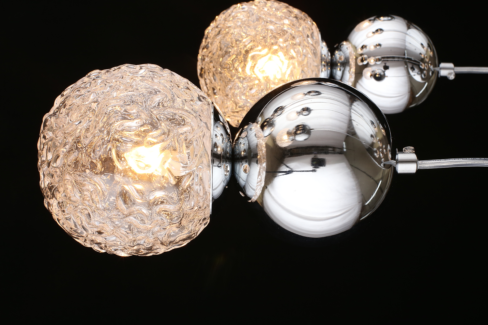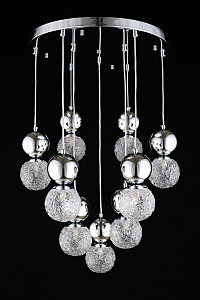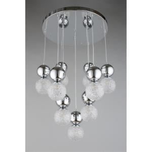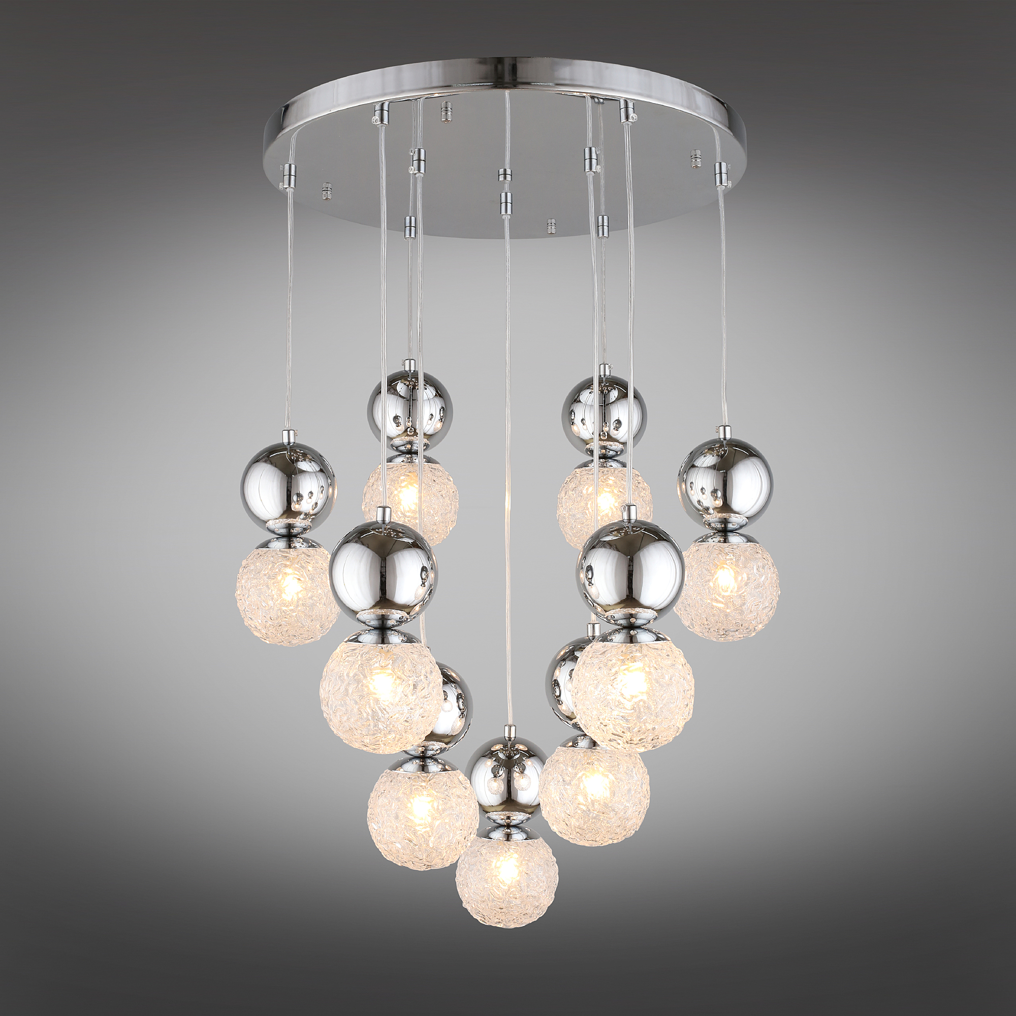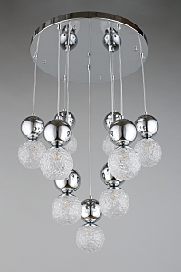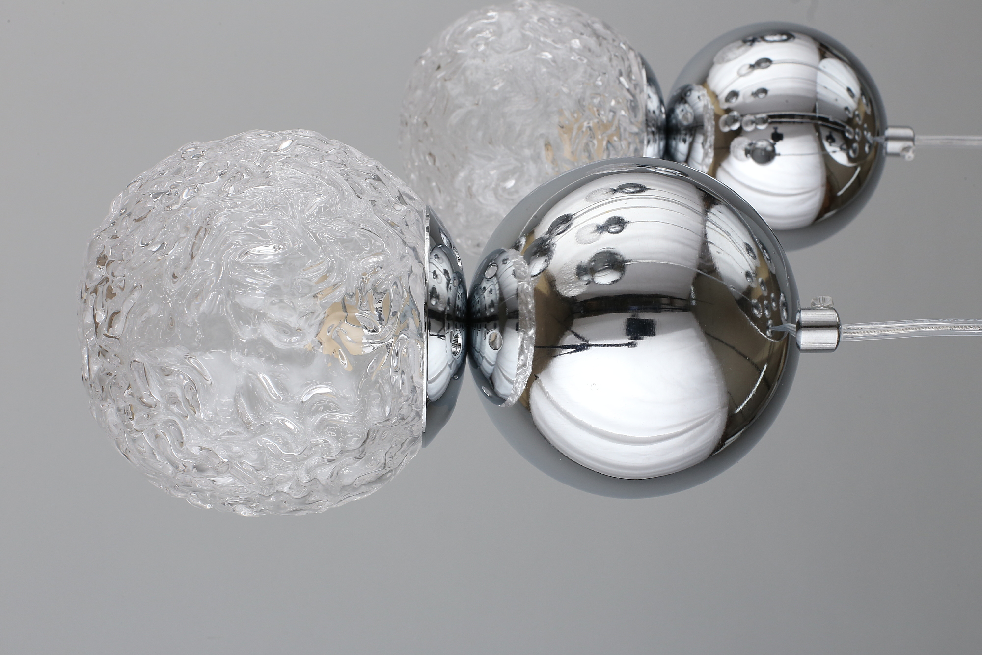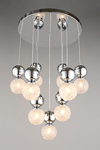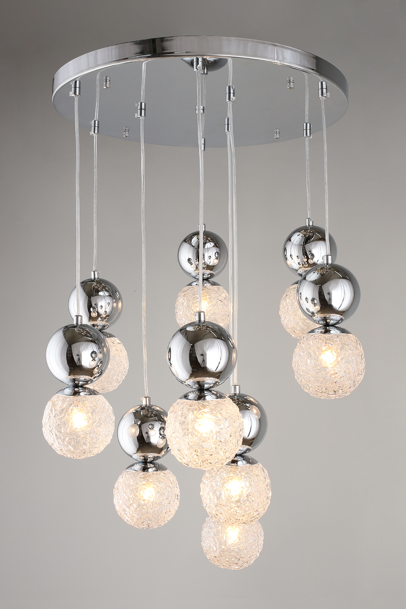 Допускается отличие страны-изготовителя, указанной в характеристиках. Линии производства могут находиться в нескольких государствах. Это не влияет на качество изготовления товара: все заводы данного бренда работают по общим стандартам, а готовые изделия проходят соответствующий контроль.Польша Коллекция Violet ЦветЦвет арматуры Хром Цвет Хром Материал арматуры Металл Цвет декора хром Цвет плафона прозрачный Материал декора Металл Материал плафона Стекло РазмерыВысота (мм) 1500 Диаметр (мм) 580 Высота минимальная (мм) 500 Ширина (мм) 580 ЭлектрикаКоличество ламп (шт) 9 Цоколь G9 Тип лампы Светодиодная Лампочки в комплекте Нет в комплекте Мощность лампы (Вт) 5 Общая мощность (Вт) 45 Световой поток 2475 Дополнительная информацияСпособ крепления Планка Вес (Кг) 7.6 Тип подвеса На тросах Количество подвесов Много подвесных элементов -