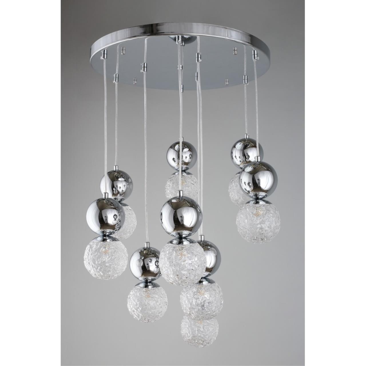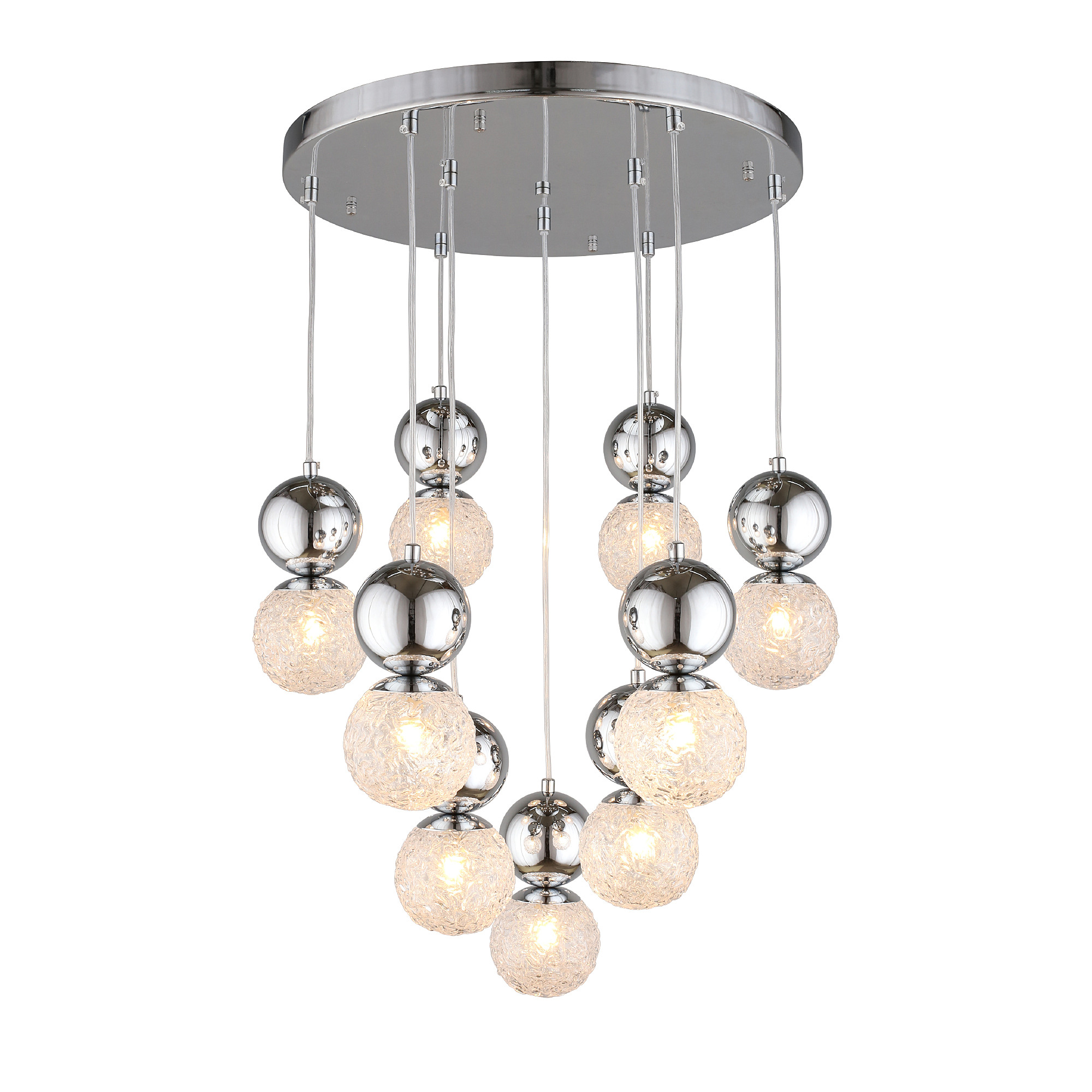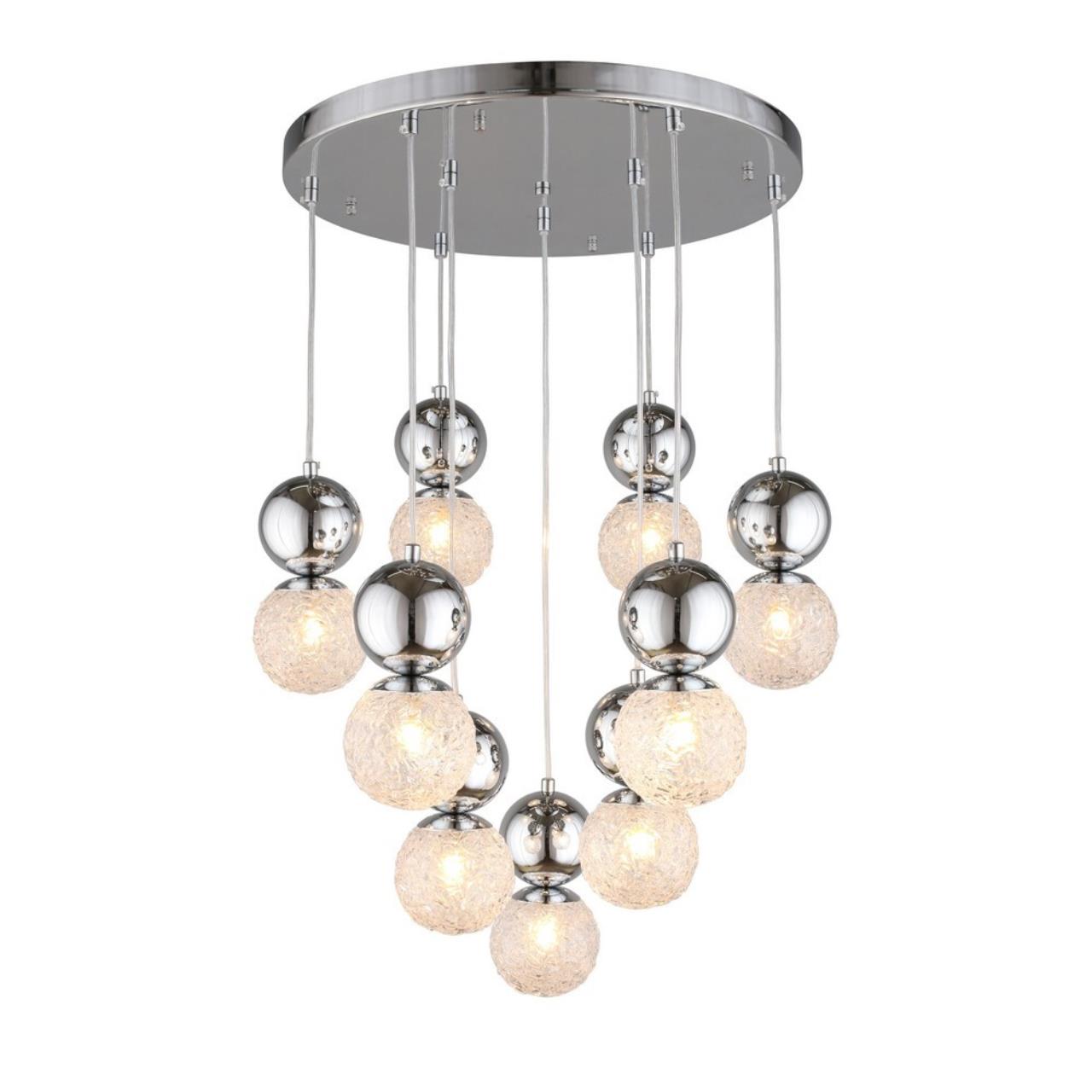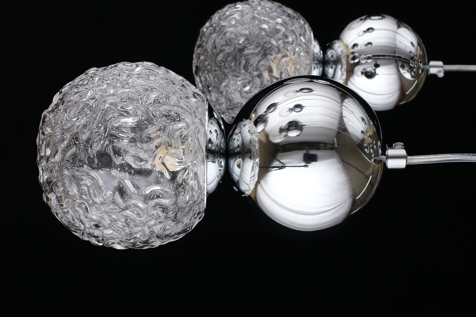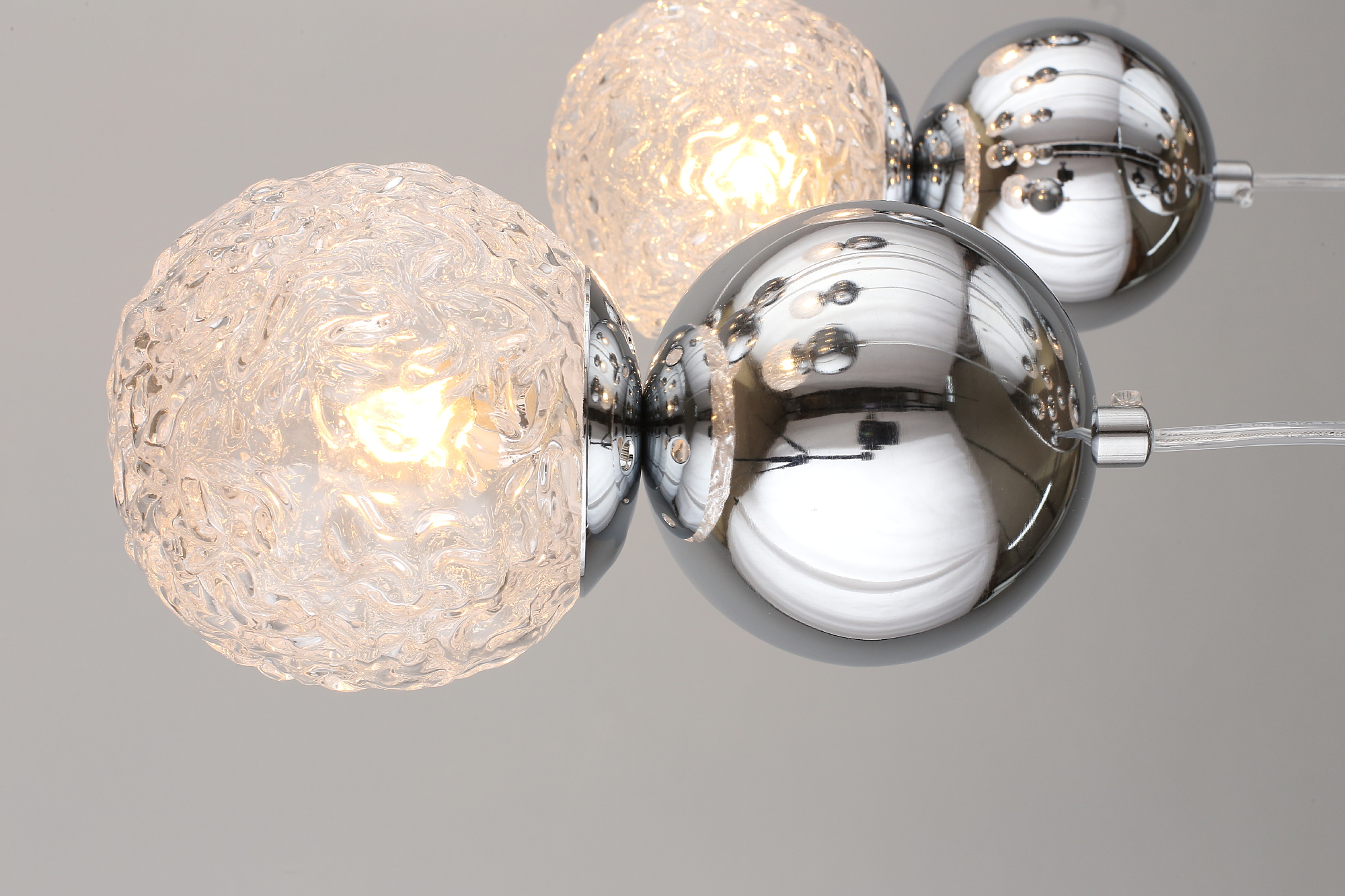 Допускается отличие страны-изготовителя, указанной в характеристиках. Линии производства могут находиться в нескольких государствах. Это не влияет на качество изготовления товара: все заводы данного бренда работают по общим стандартам, а готовые изделия проходят соответствующий контроль.Польша Коллекция Violet ЦветЦвет арматуры Хром Цвет Хром Материал арматуры Металл Цвет декора хром Цвет плафона прозрачный Материал декора Металл Материал плафона Стекло РазмерыВысота (мм) 1500 Диаметр (мм) 580 Высота минимальная (мм) 500 Ширина (мм) 580 ЭлектрикаКоличество ламп (шт) 9 Цоколь G9 Тип лампы Светодиодная Лампочки в комплекте Нет в комплекте Мощность лампы (Вт) 5 Общая мощность (Вт) 45 Световой поток 2475 Дополнительная информацияСпособ крепления Планка Вес (Кг) 7.6 Тип подвеса На тросах Количество подвесов Много подвесных элементов -