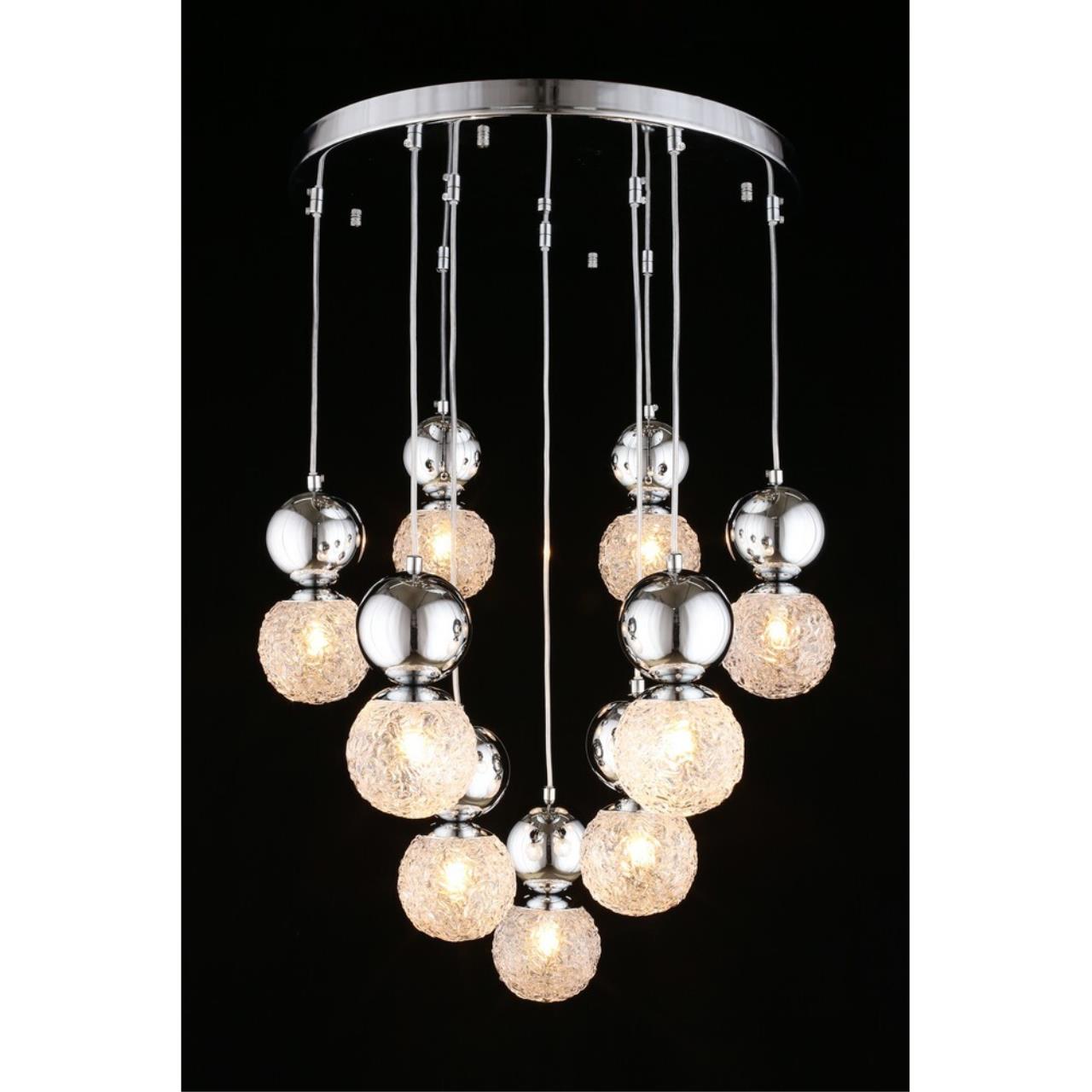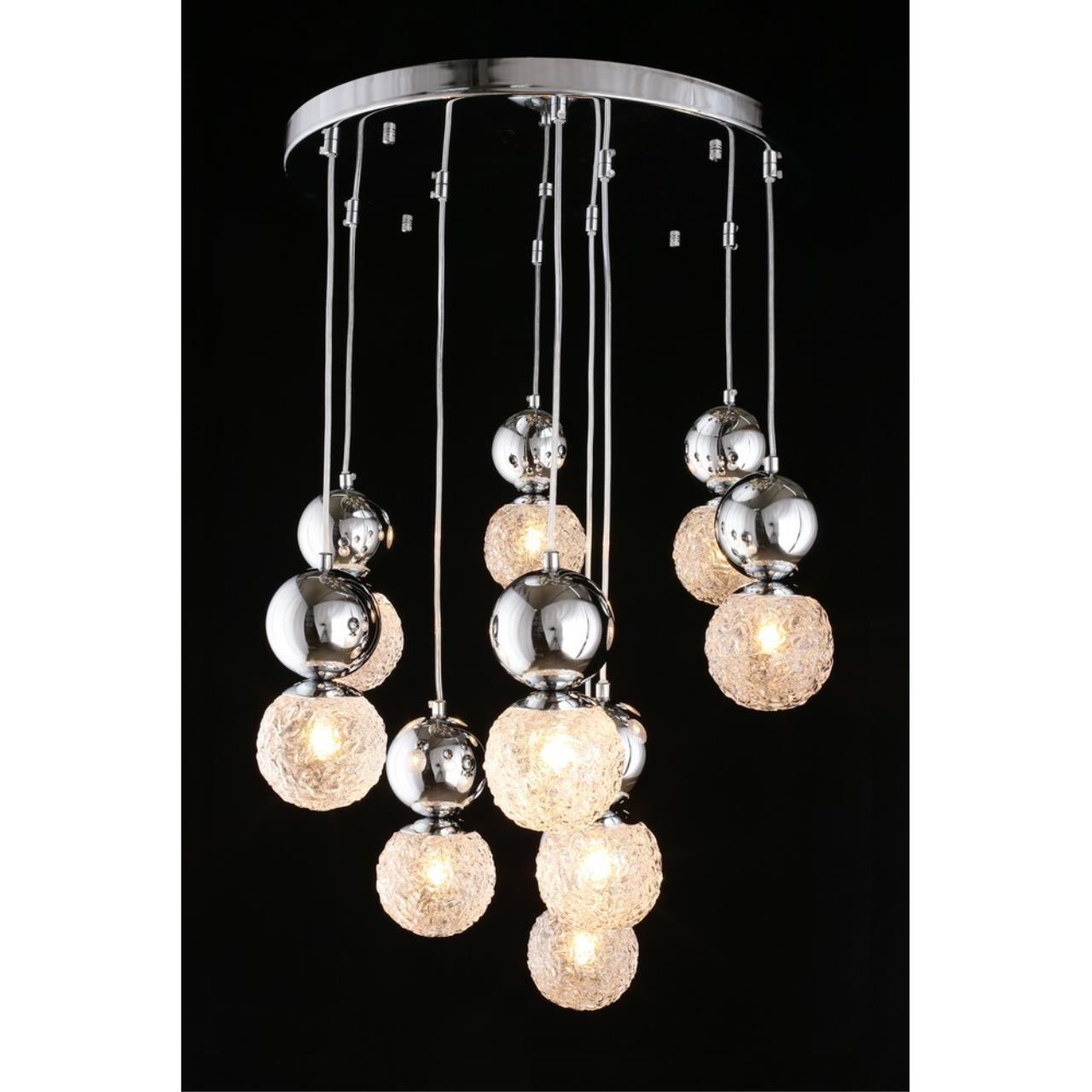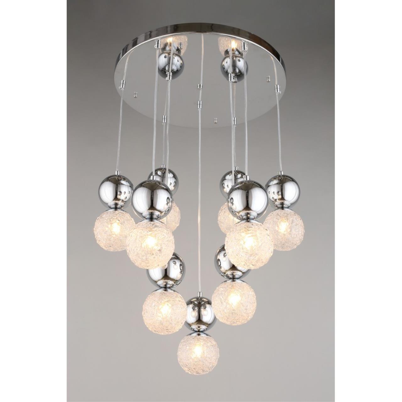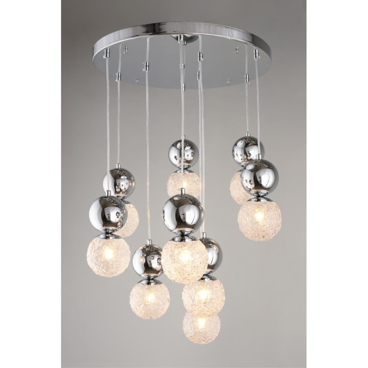 Допускается отличие страны-изготовителя, указанной в характеристиках. Линии производства могут находиться в нескольких государствах. Это не влияет на качество изготовления товара: все заводы данного бренда работают по общим стандартам, а готовые изделия проходят соответствующий контроль.Польша Коллекция Violet ЦветЦвет арматуры Хром Цвет Хром Материал арматуры Металл Цвет декора хром Цвет плафона прозрачный Материал декора Металл Материал плафона Стекло РазмерыВысота (мм) 1500 Диаметр (мм) 580 Высота минимальная (мм) 500 Ширина (мм) 580 ЭлектрикаКоличество ламп (шт) 9 Цоколь G9 Тип лампы Светодиодная Лампочки в комплекте Нет в комплекте Мощность лампы (Вт) 5 Общая мощность (Вт) 45 Световой поток 2475 Дополнительная информацияСпособ крепления Планка Вес (Кг) 7.6 Тип подвеса На тросах Количество подвесов Много подвесных элементов -