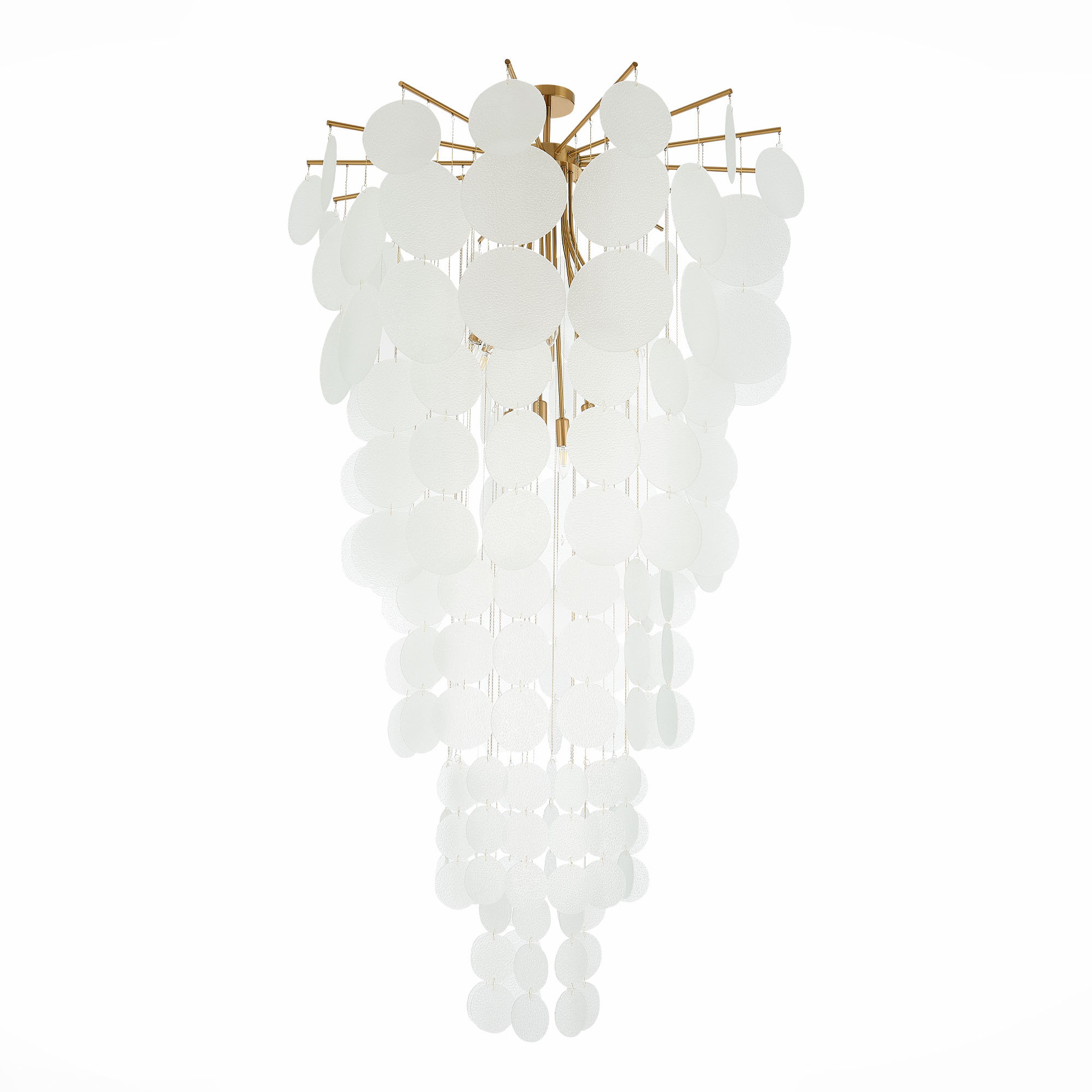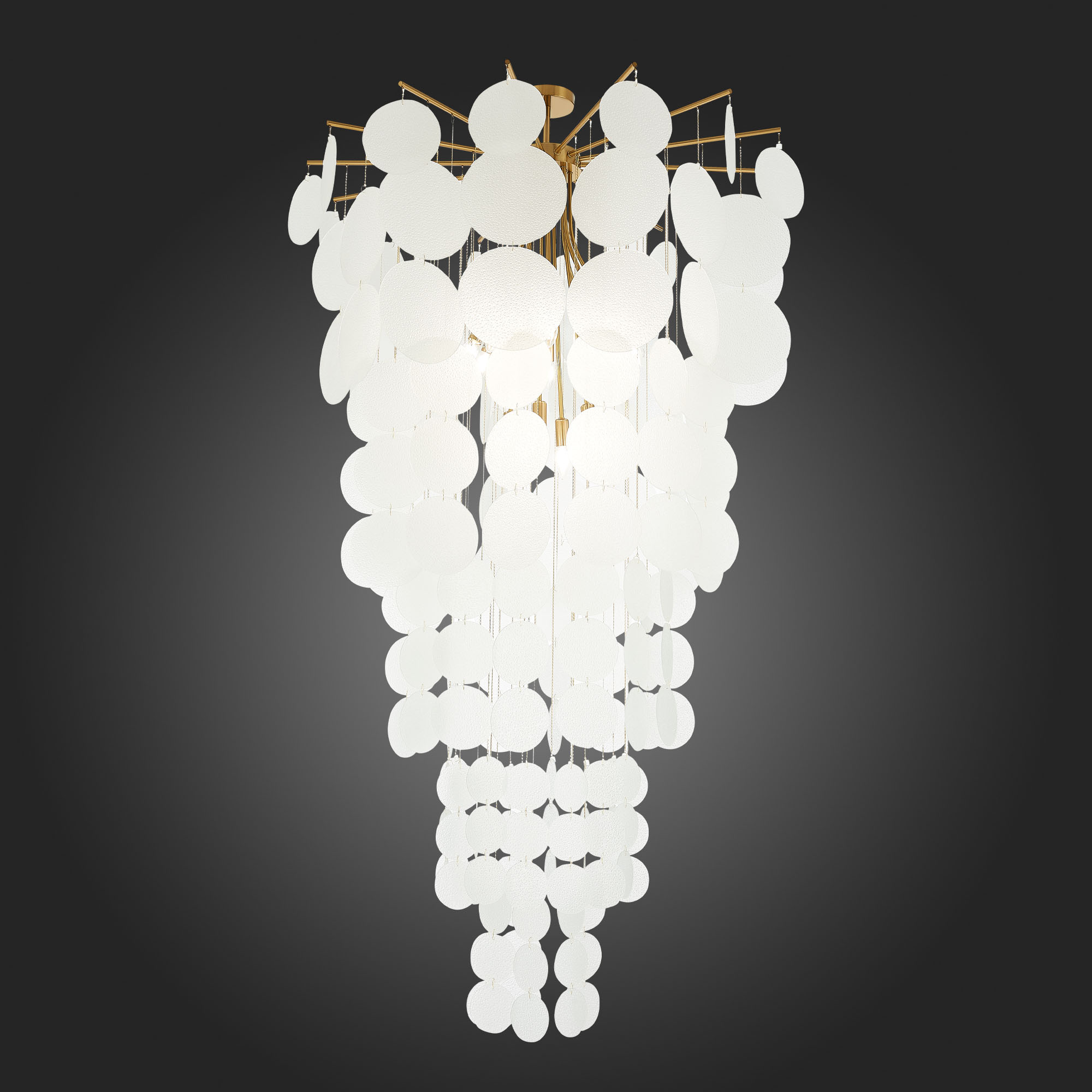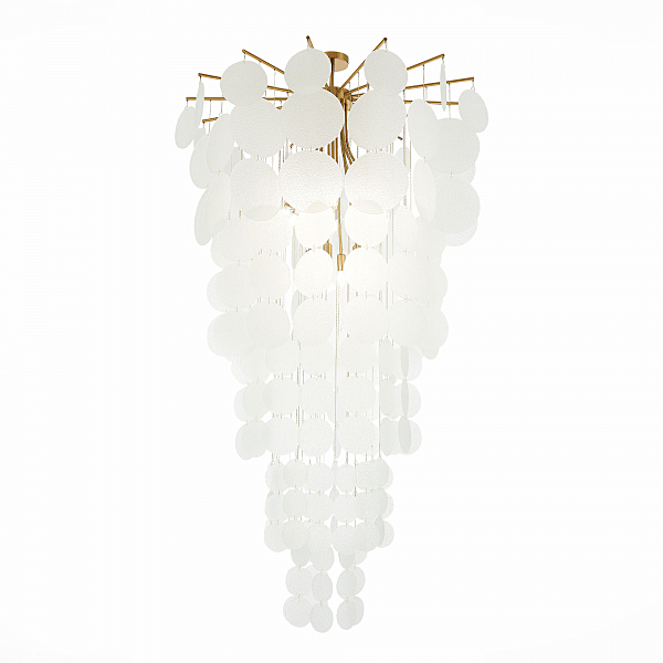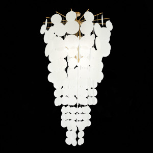 Изюминкой коллекции Vittoria являются подвески-диски из фактурного стекла разного диаметра. Такое сочетание делает дизайн объемным и многогранным. В коллекции представлены светильники как стандартного размера, так и крупный каскад, который станет настоящим украшением помещения с высокими потолками или лестничного пролета. Дополняет коллекцию небольшой настенный светильник со стеклянным диском вместо традиционного плафона.