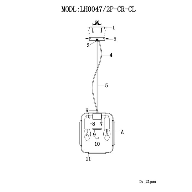 Светильник подвесной Viviana LH0047/2P-CR-CL