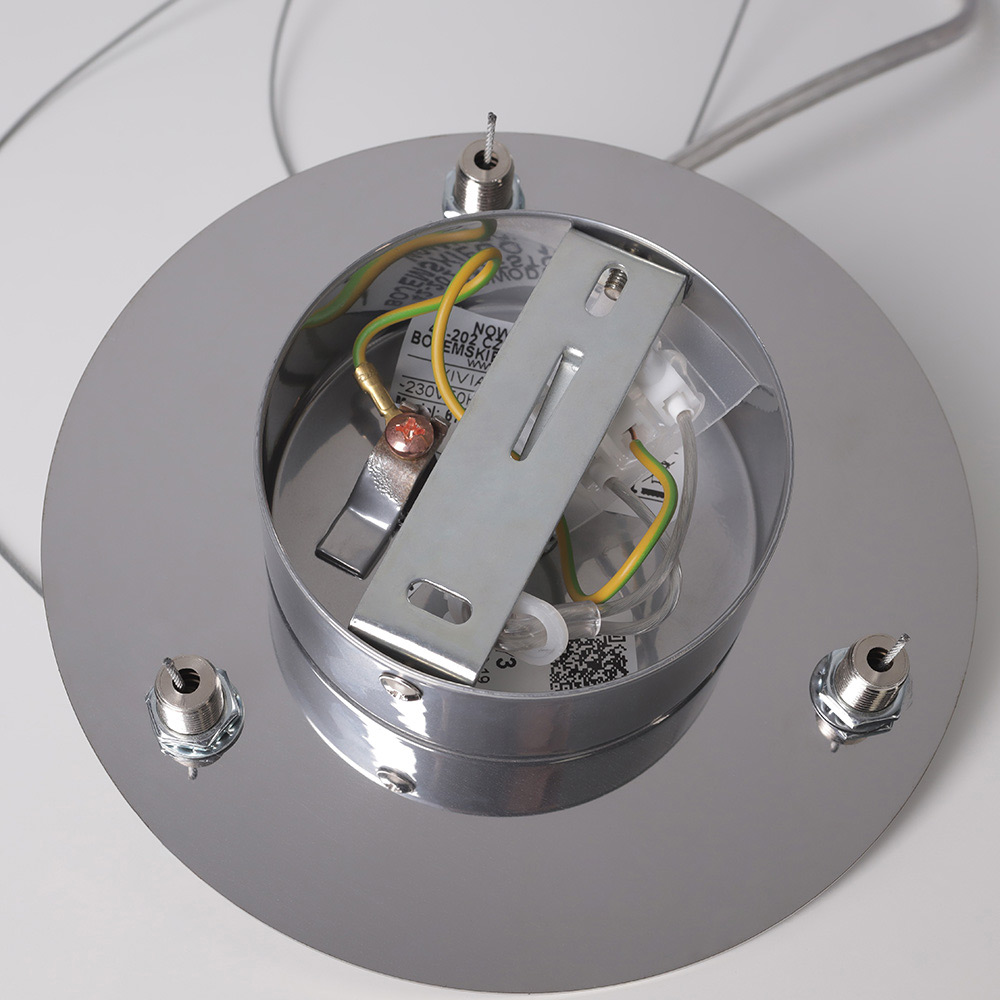 Допускается отличие страны-изготовителя, указанной в характеристиках. Линии производства могут находиться в нескольких государствах. Это не влияет на качество изготовления товара: все заводы данного бренда работают по общим стандартам, а готовые изделия проходят соответствующий контроль.Польша Коллекция Viviane ЦветЦвет арматуры Хром Цвет Серый Материал арматуры Сталь Цвет плафона Серый Материал плафона Ткань РазмерыВысота (мм) 1080 Диаметр (мм) 630 Высота минимальная (мм) 160 Ширина (мм) 635 ЭлектрикаКоличество ламп (шт) 3 Цоколь E27 Тип лампы Светодиодная Лампочки в комплекте Нет в комплекте Мощность лампы (Вт) 25 Общая мощность (Вт) 75 Напряжение (В) 220 Световой поток 980 Дополнительная информацияСтепень защиты (IP) IP20 Место установки на потолок Вес (Кг) 3,96 Тип подвеса На тросах Количество подвесов Одиночный подвес -