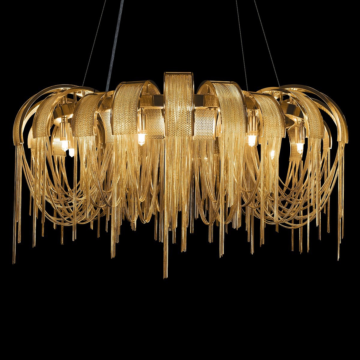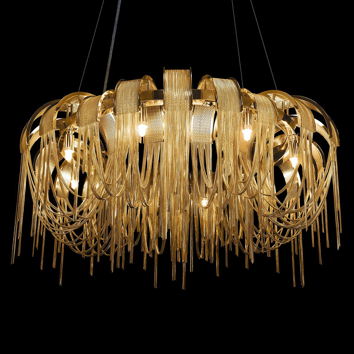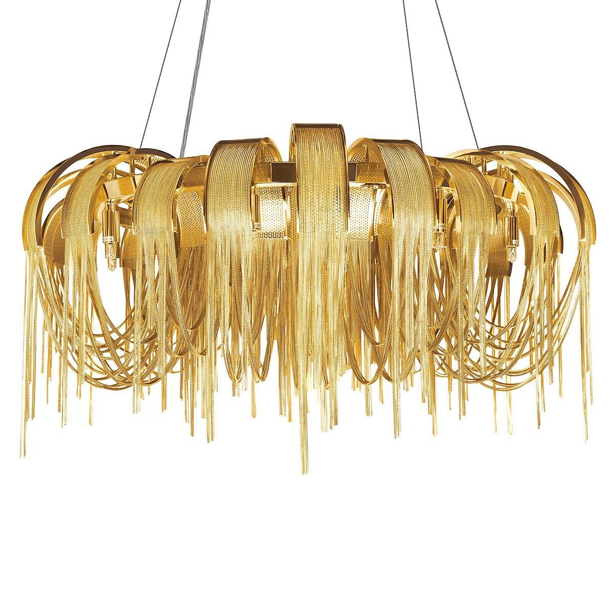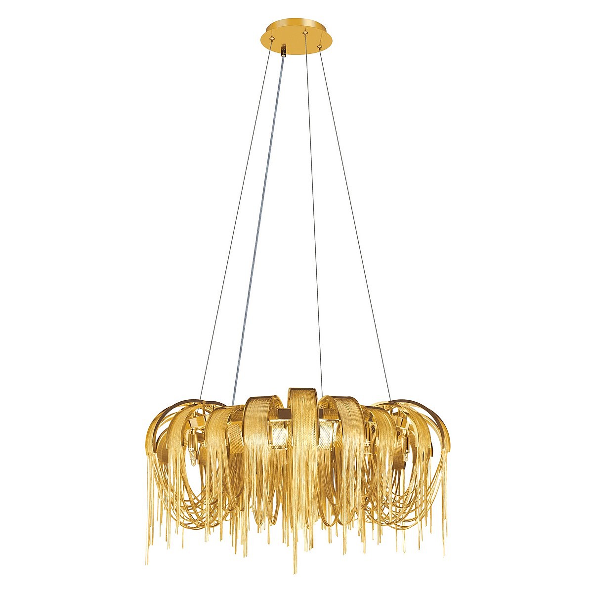 Допускается отличие страны-изготовителя, указанной в характеристиках. Линии производства могут находиться в нескольких государствах. Это не влияет на качество изготовления товара: все заводы данного бренда работают по общим стандартам, а готовые изделия проходят соответствующий контроль.Испания Коллекция Volver ЦветЦвет арматуры Золото Цвет Золото Материал арматуры Металл РазмерыВысота (мм) 3426 Диаметр (мм) 800 Высота минимальная (мм) 426 Диаметр основания 200 ЭлектрикаКоличество ламп (шт) 8 Цоколь G9 Мощность лампы (Вт) 40 Общая мощность (Вт) 320 Напряжение (В) 220 Дополнительная информацияСпособ крепления Планка Степень защиты (IP) IP20 Место установки на потолок Вес (Кг) 12.4 Тип подвеса На тросах -