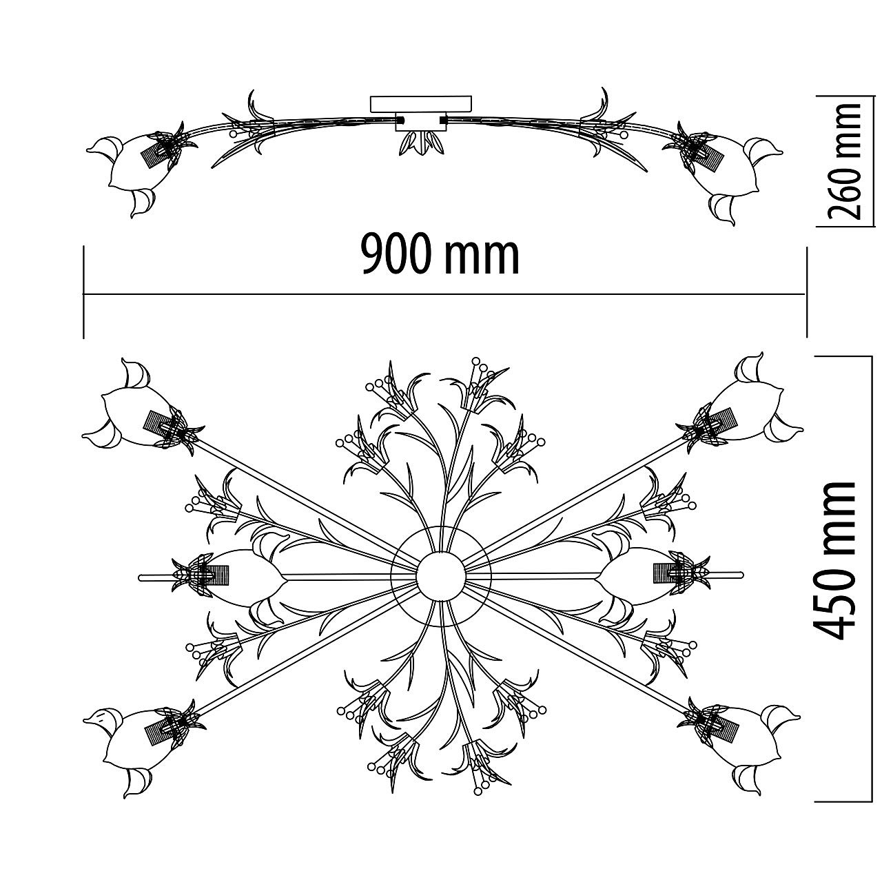 Допускается отличие страны-изготовителя, указанной в характеристиках. Линии производства могут находиться в нескольких государствах. Это не влияет на качество изготовления товара: все заводы данного бренда работают по общим стандартам, а готовые изделия проходят соответствующий контроль.Германия Коллекция Восторг ЦветЦвет арматуры Белый, патина Цвет Бежевый Материал арматуры Металл Цвет декора разноцветный Цвет плафона коричневый Материал декора Металл, Стекло Материал плафона Стекло РазмерыВысота (мм) 450 Длина (мм) 900 Ширина (мм) 450 ЭлектрикаКоличество ламп (шт) 6 Цоколь E14 Тип лампы Светодиодная, Накаливания, Энергосберегающая (КЛЛ) Лампочки в комплекте Нет в комплекте Возможность подключение диммера Есть Мощность лампы (Вт) 60 W Общая мощность (Вт) 360 Напряжение (В) 220 Дополнительная информацияСтепень защиты (IP) IP20 Вес (Кг) 4.6 -