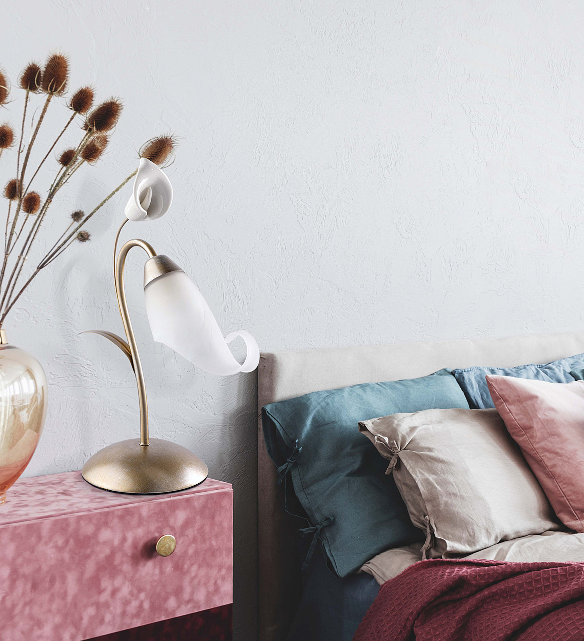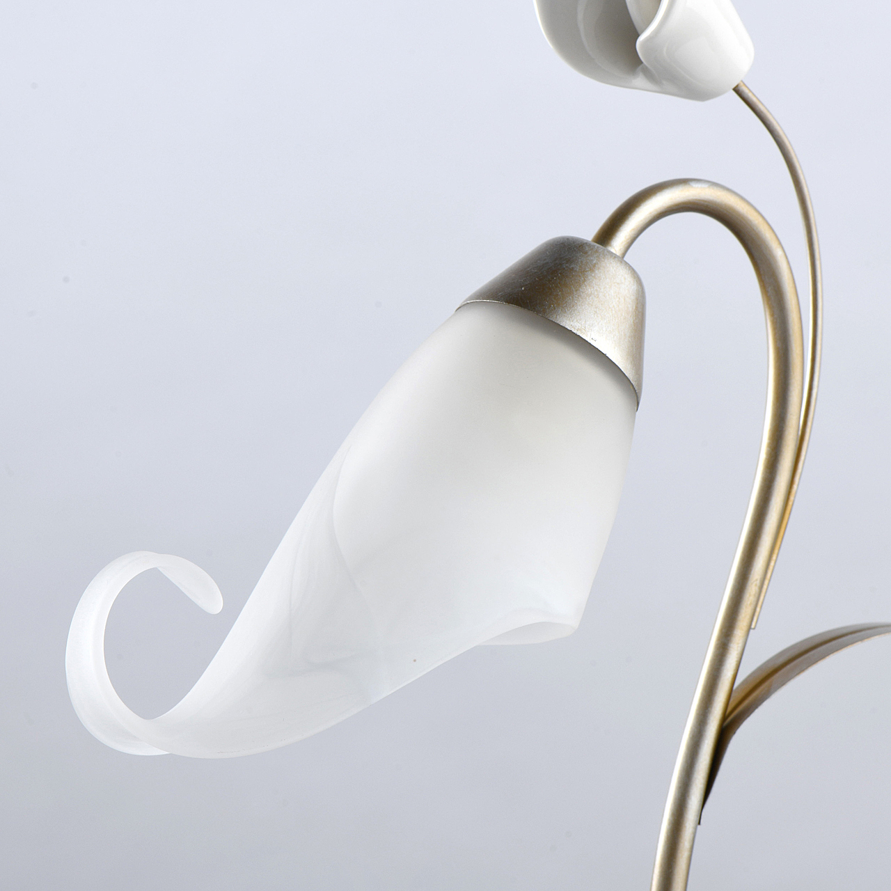 Современный флористический дизайн, выполненный в трендовых оттенках по технологии двойного окрашивания.Алебастровое стекло плафона создает мягкий свет.Фарфоровый декор бутона ручной работы.Полная семья из бра, настольного и потолочного света.