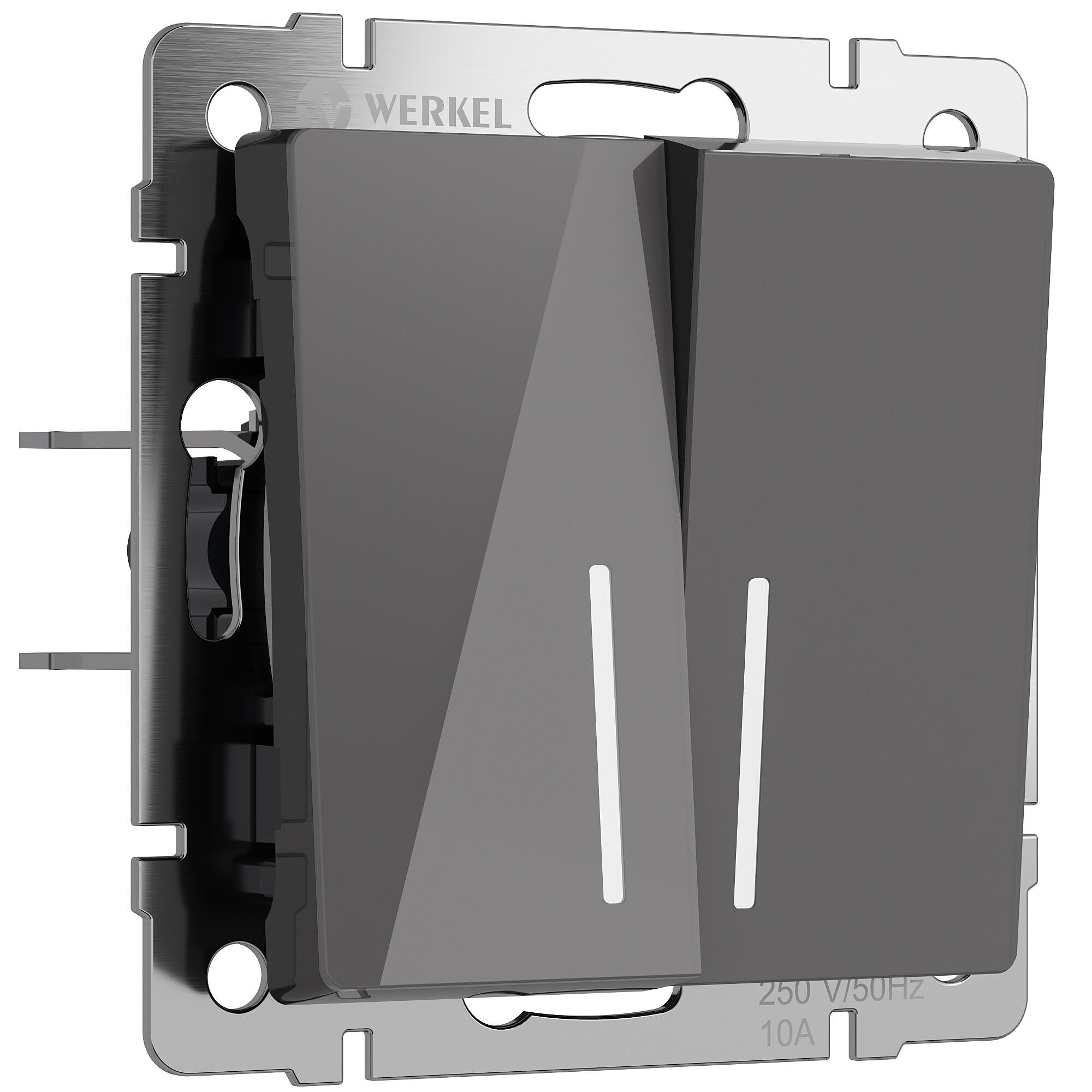 Выключатель Werkel W1120144/ Выключатель двухклавишный с подсветкой (графит акрил)