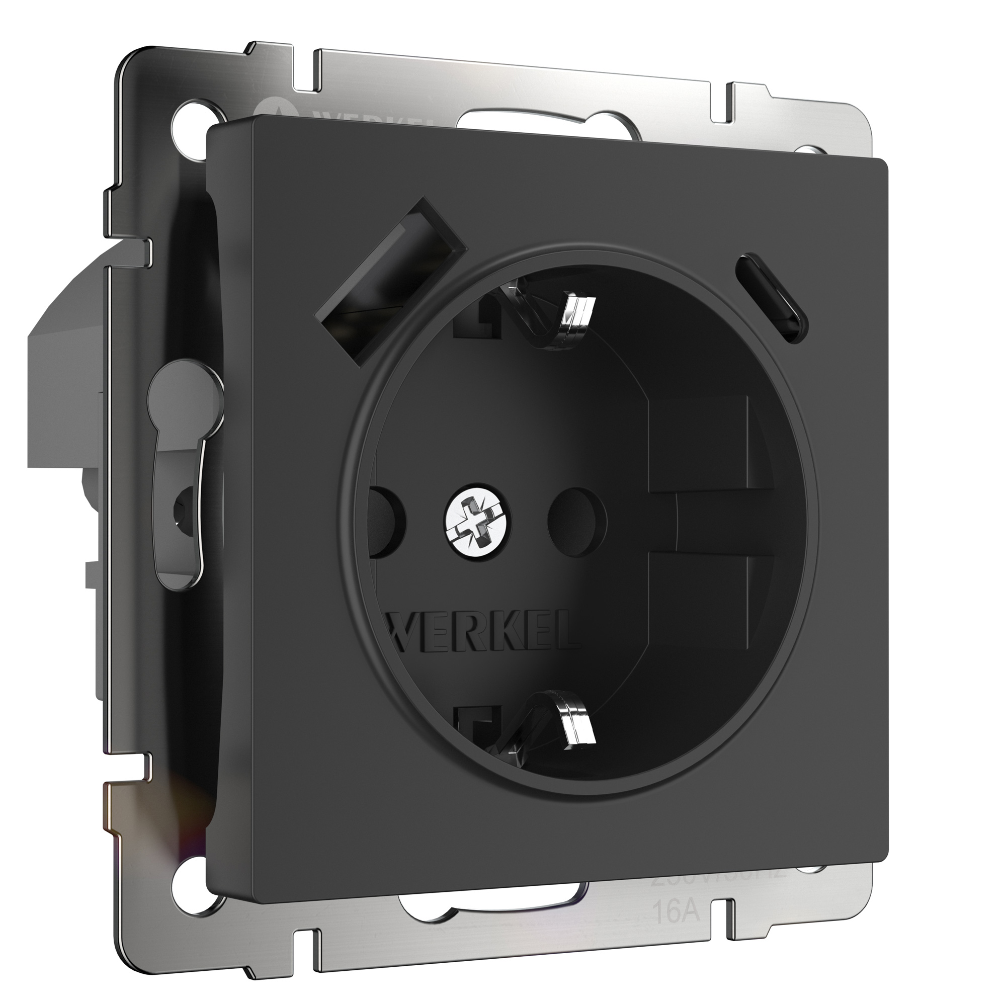 Розетка Werkel W1171708/ Розетка с заземлением, шторками и USB тип A+C (черный)