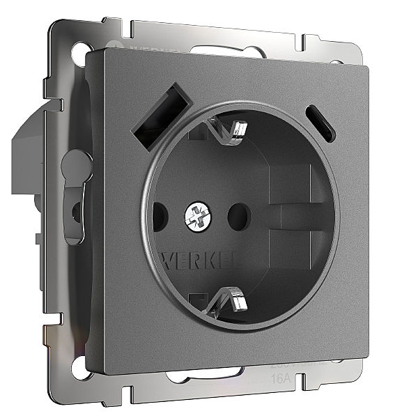 Производитель Werkel Артикул W1171764/ Розетка с заземлением, шторками и USB тип A+C (графит матовый) Страна